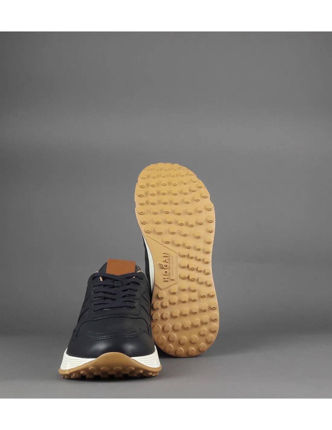 Collezione invernale, sneakers Hogan uomo Hyperlight in pelle nappa, h cucita, spoiler in contrasto, fussbett in memory foam, suola in gomma