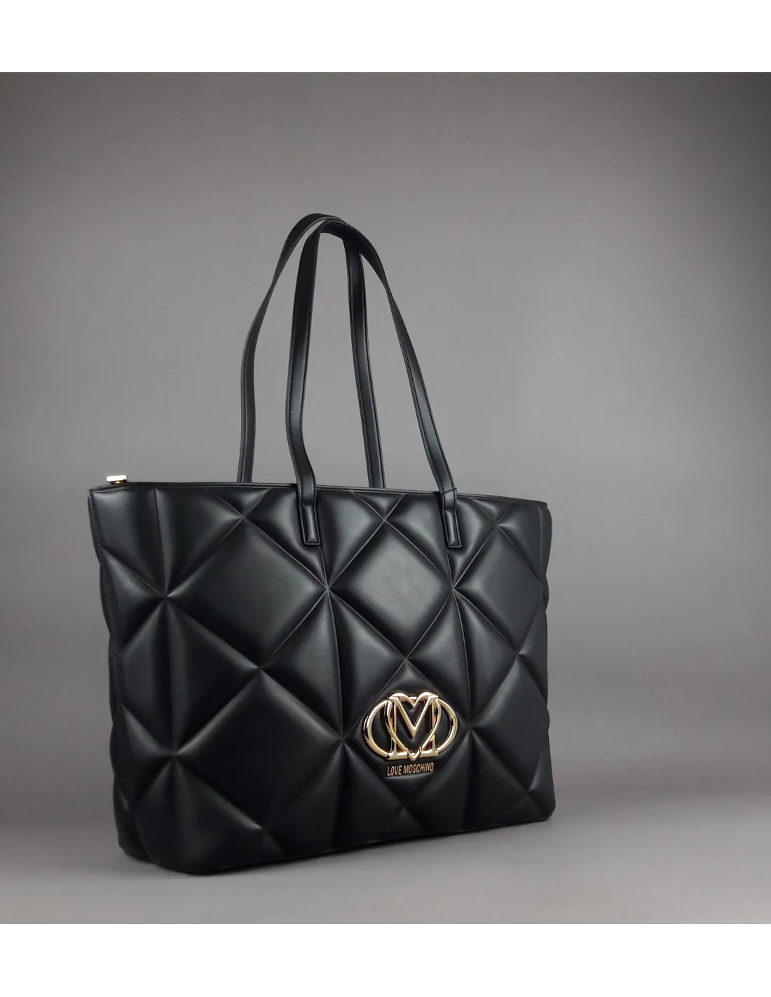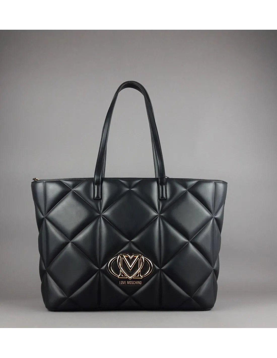 Love Moschino collezione invernale, borsa shopper donna in poliuretano trapuntato, doppia tracolla centrale, chiusura con cerniera, logo metallo frontale