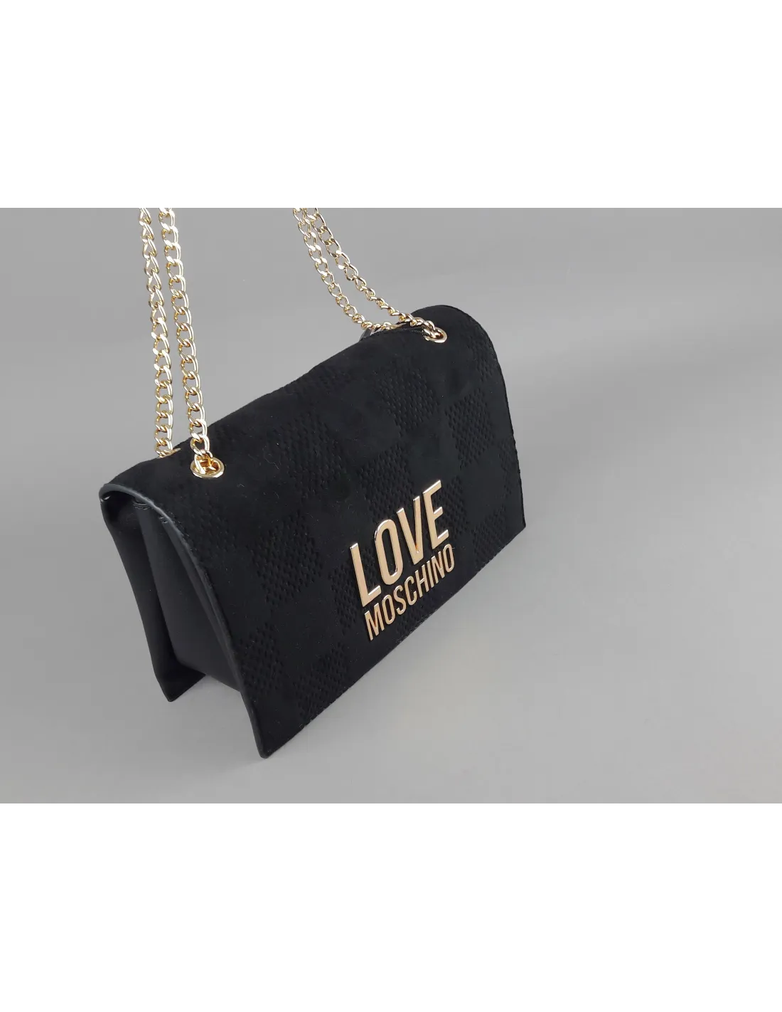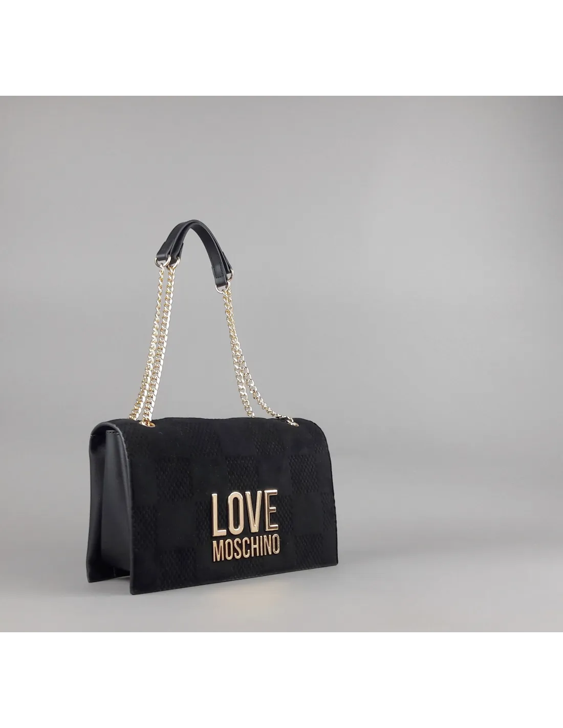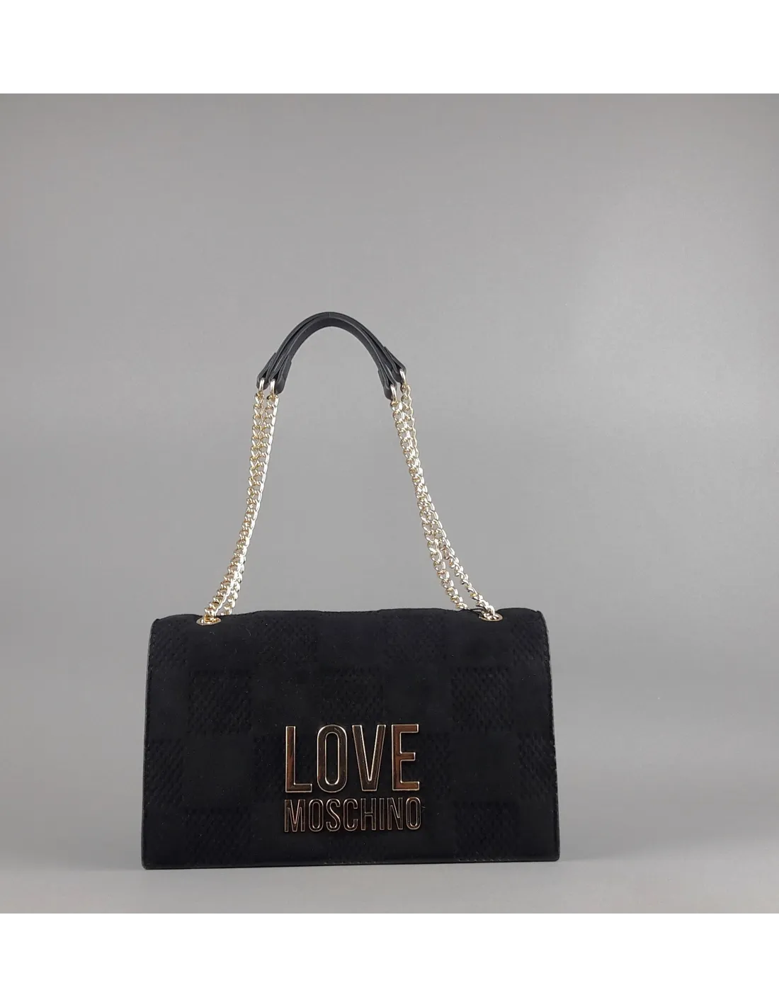 Love Moschino \ Borsa A Spalla Donna Velour Pu Nero Prezzo 199,00