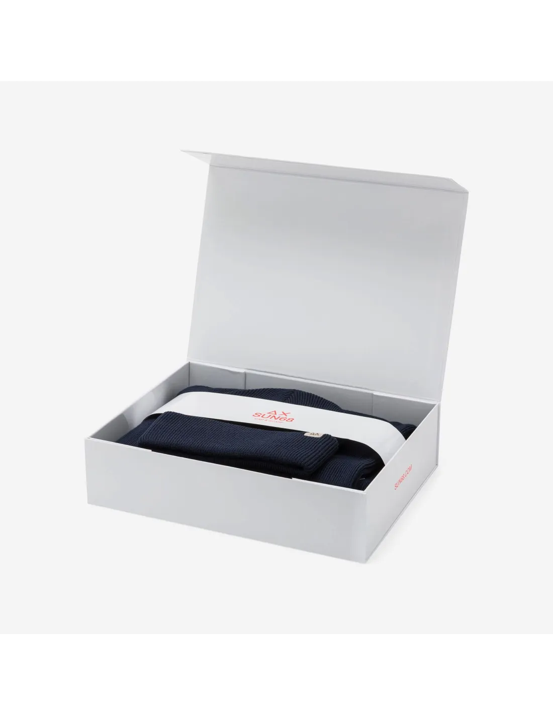 Collezione invernale, set coordinato unisex di berretto e sciarpa SUN68, in misto lana a costine, bordi sciarpa con frange