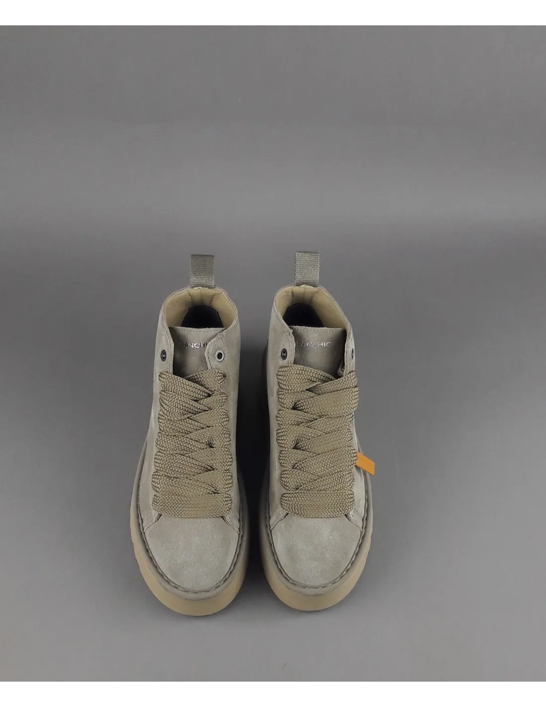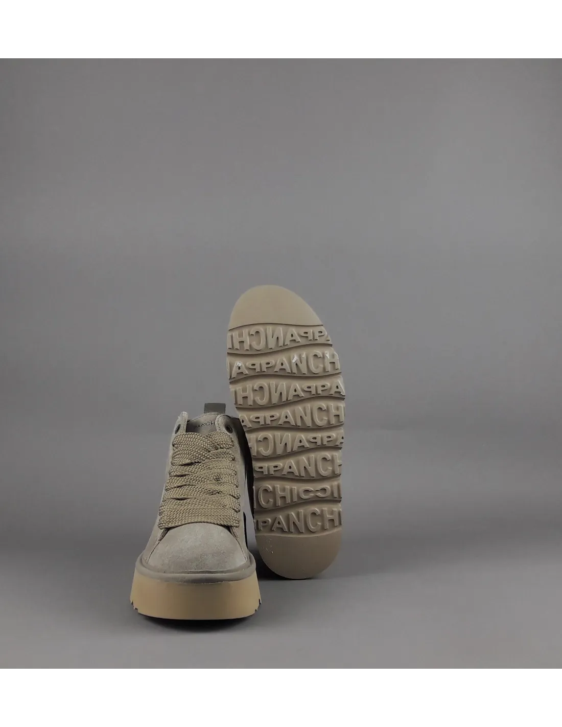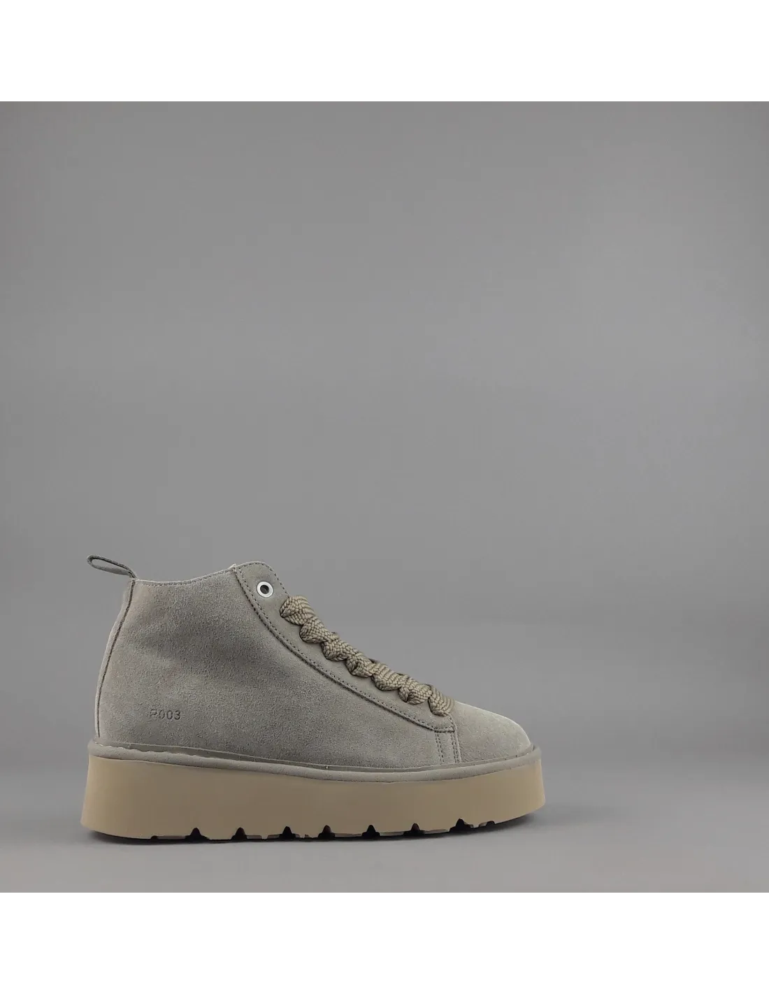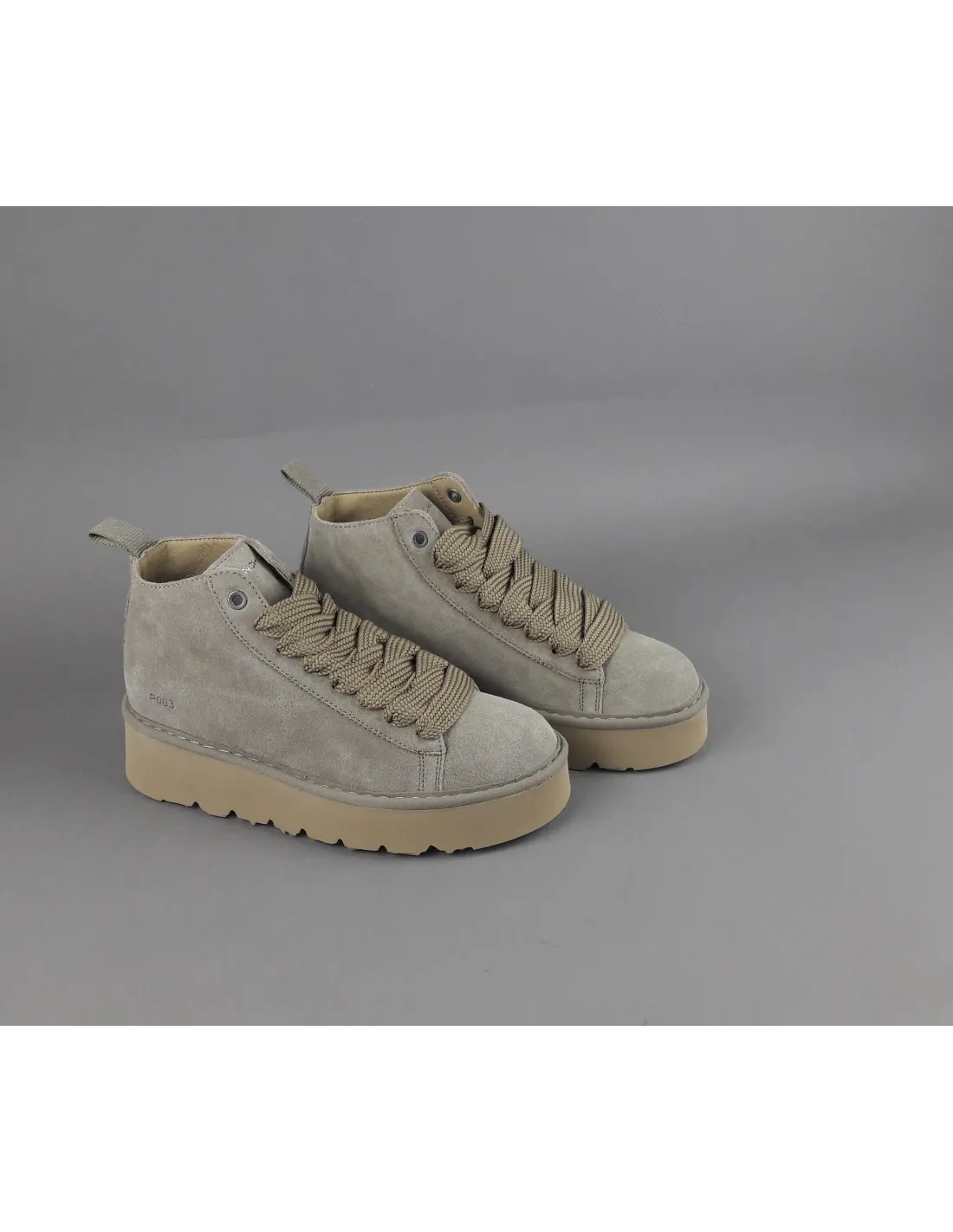 Panchic collezione invernale, polacchino allacciato modello P03 donna, tomaia in camoscio, lacci in contrasto, logo stampato a caldo, fussbett interno estraibile, fondo 4 cm gomma.