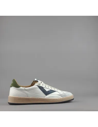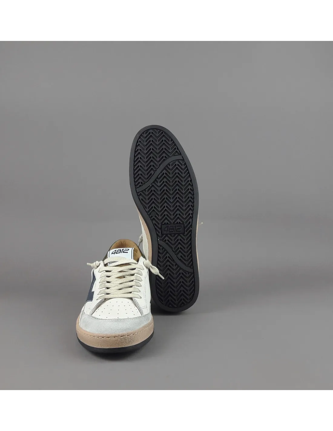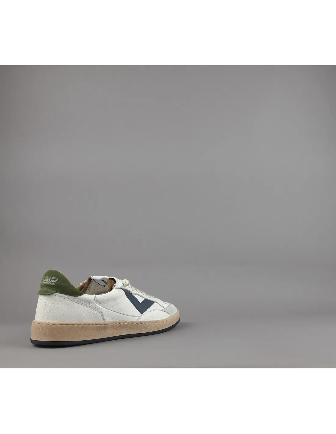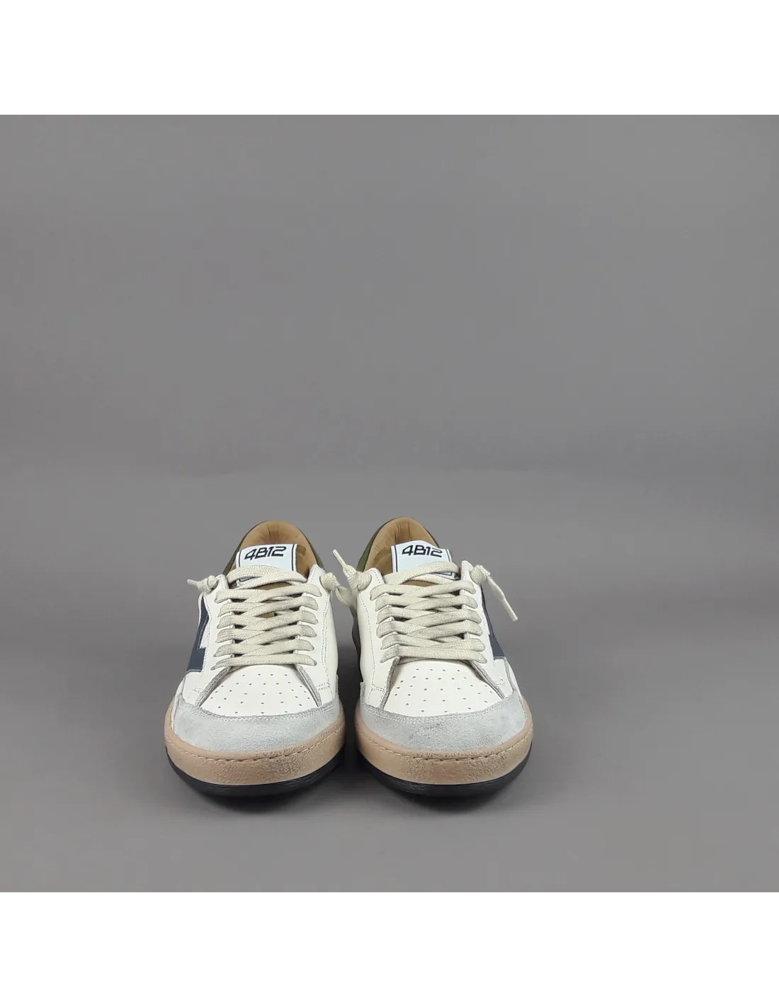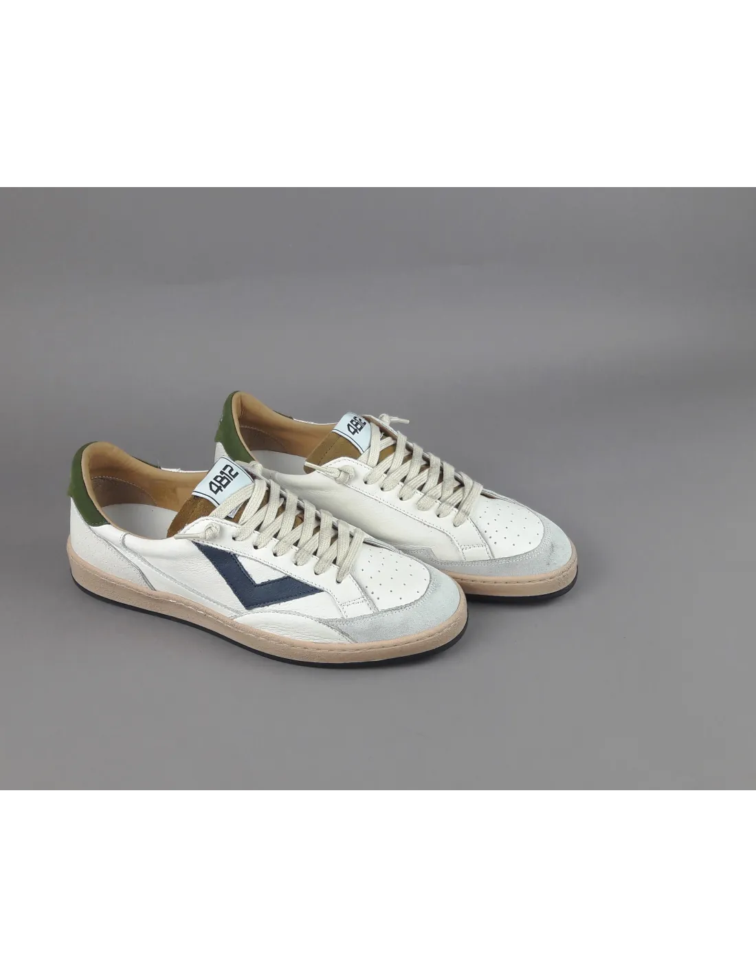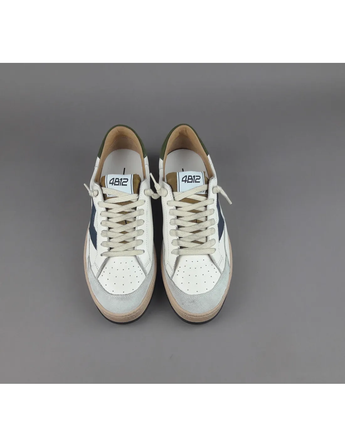 Collezione invernale, Sneakers uomo 4b12 Play in pelle bianco, inserti in camoscio, spoiler in camoscio verde, logo in pelle blu scuro, dettagli al tallone in pele craquelè, fussbett interno estraibile, suola in gomma.