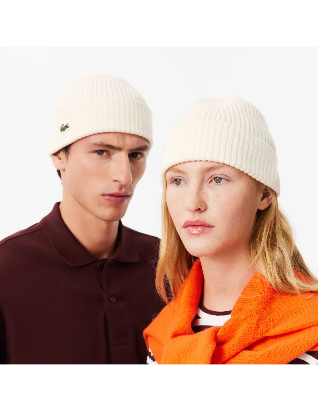 Collezione invernale, Cappello unisex in lana a costine, orlo con risvolto, coccodrillo ricamato