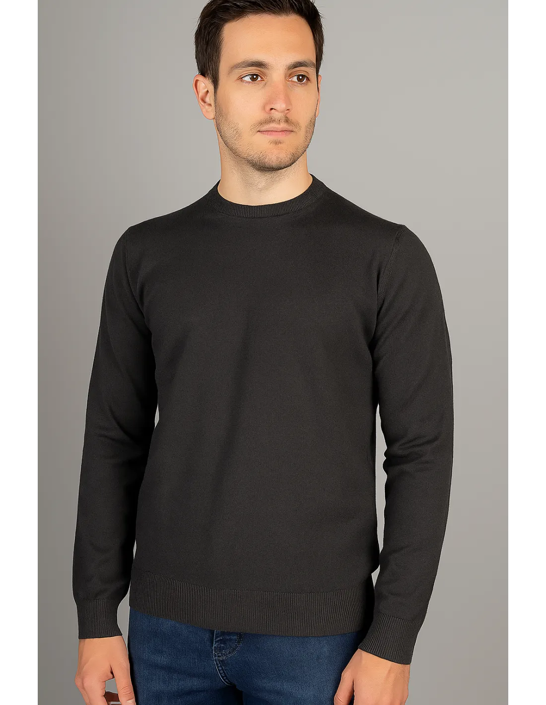 Collezione invernale, Maglia girocollo uomo Filippo De Laurentiis, in lana merino extrafine tintocapo, manica lunga, polsi e collo lavorazione a coste, vestibilità regular