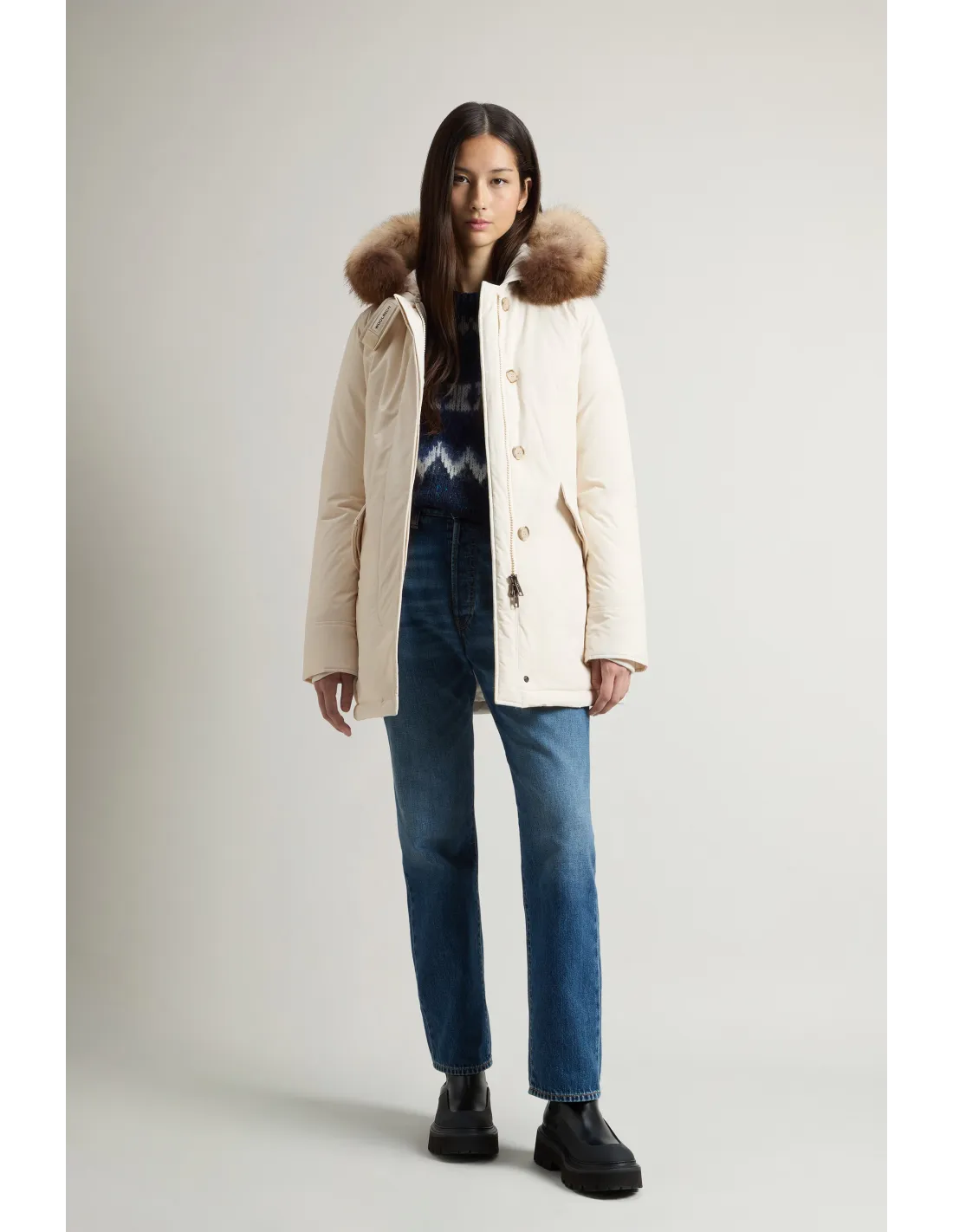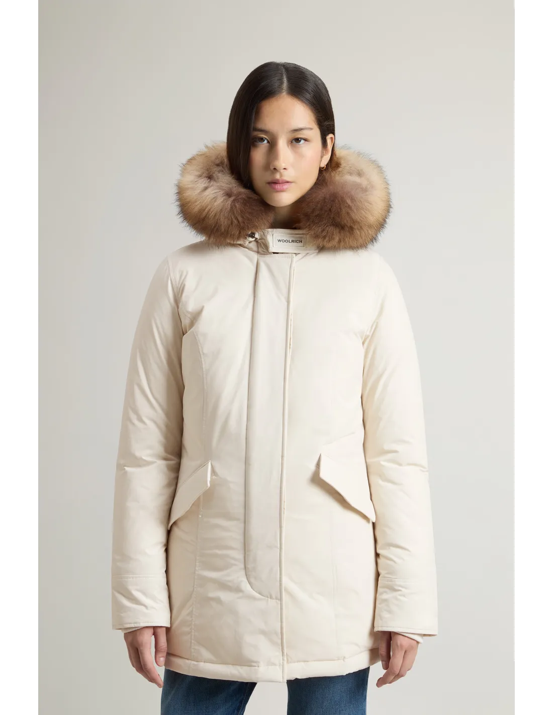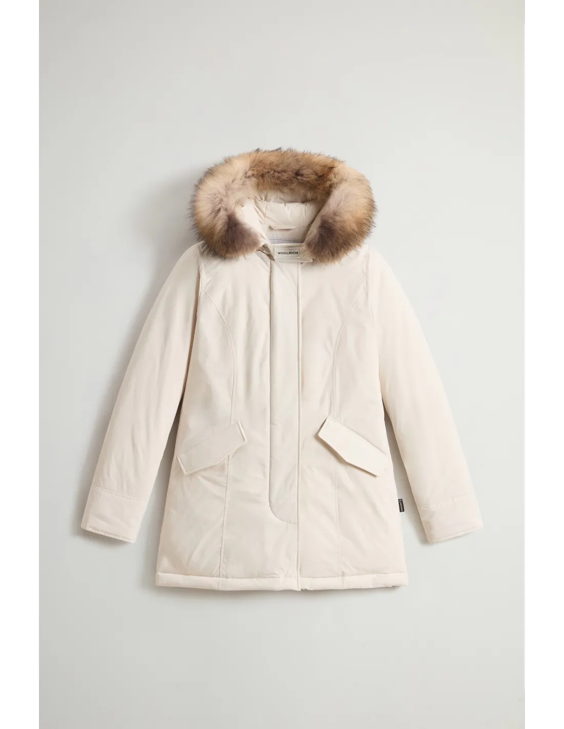 Collezione invernale, Arctic parka Luxury in tessuto urban touch idrorepellente, vestibilità slim,cappuccio con pelliccia di procione rimovibile,chiusura con zip e bottoni,tasche con patta,imbottitura è in piuma d’anatra 70/30