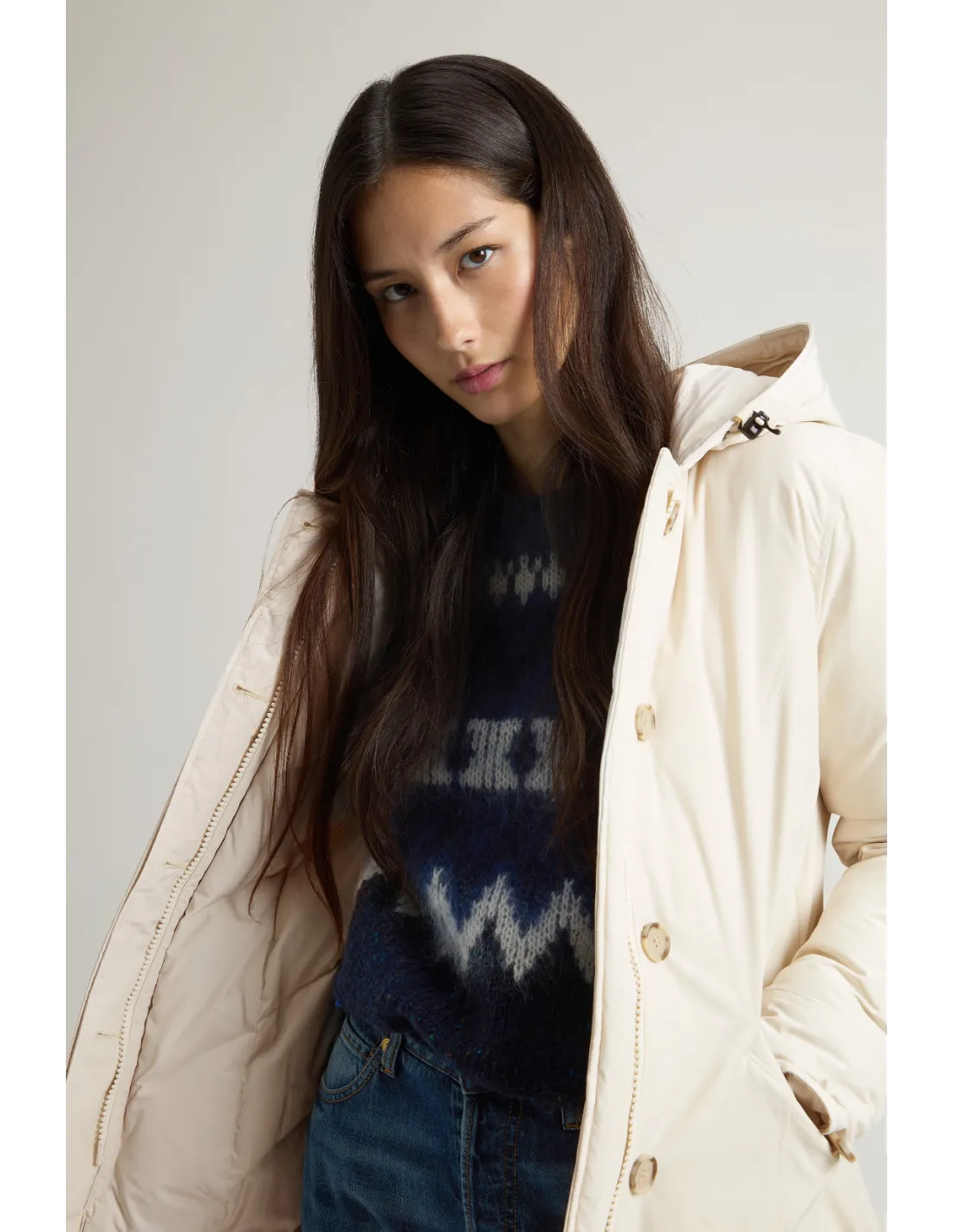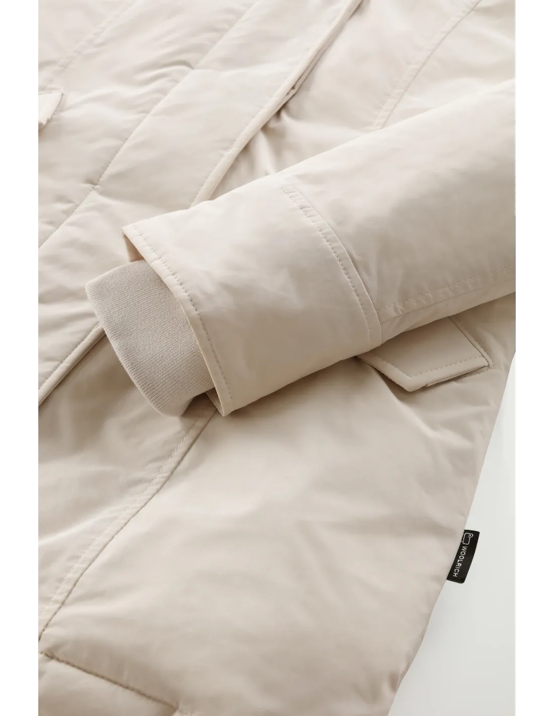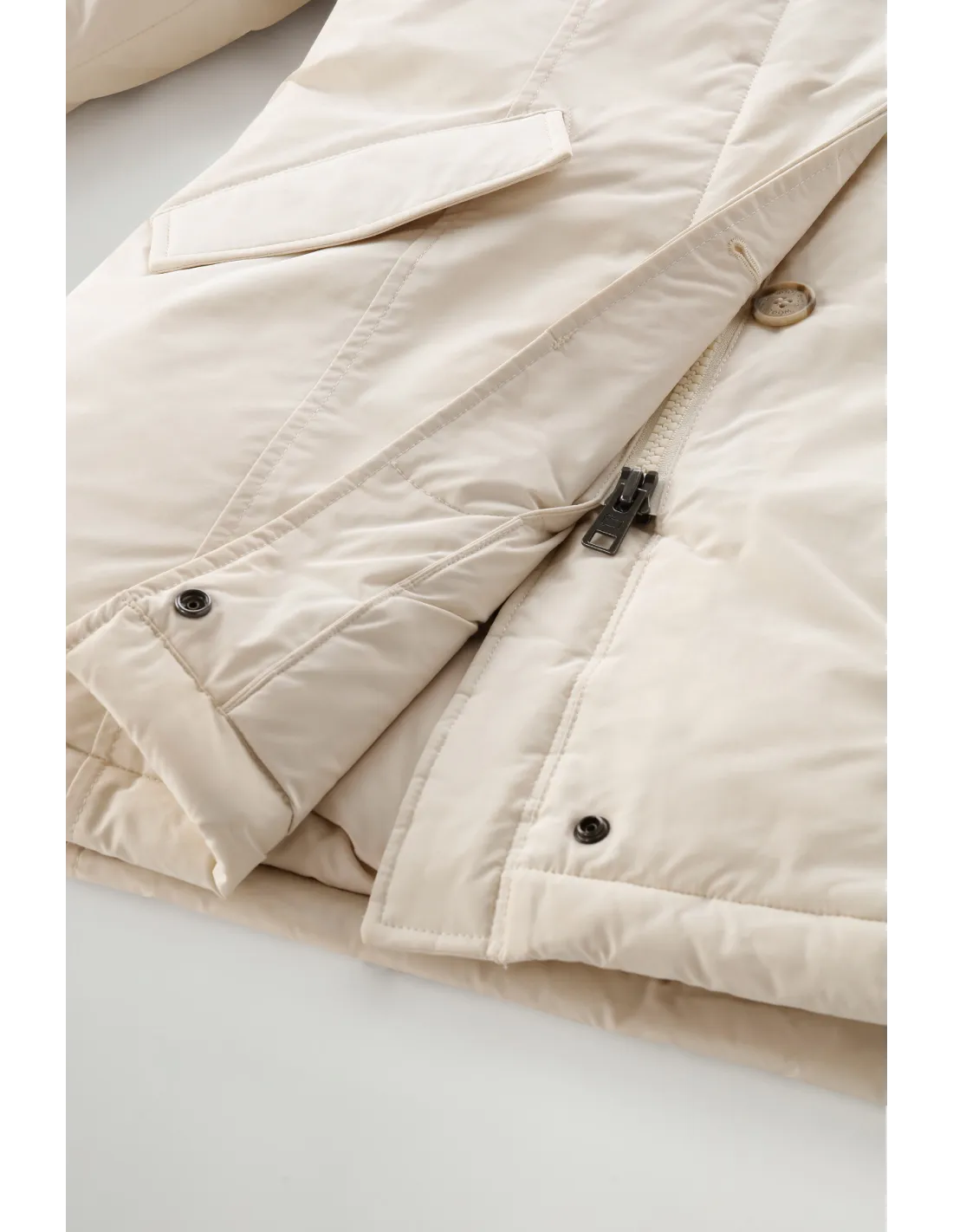 Collezione invernale, Arctic parka Luxury in tessuto urban touch idrorepellente, vestibilità slim,cappuccio con pelliccia di procione rimovibile,chiusura con zip e bottoni,tasche con patta,imbottitura è in piuma d’anatra 70/30