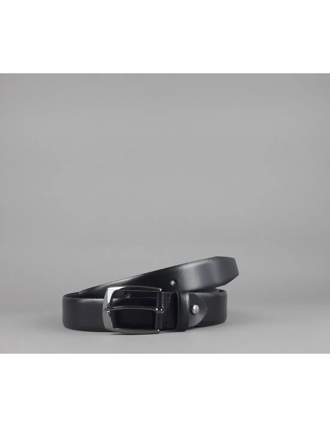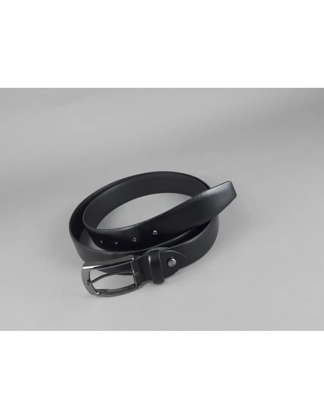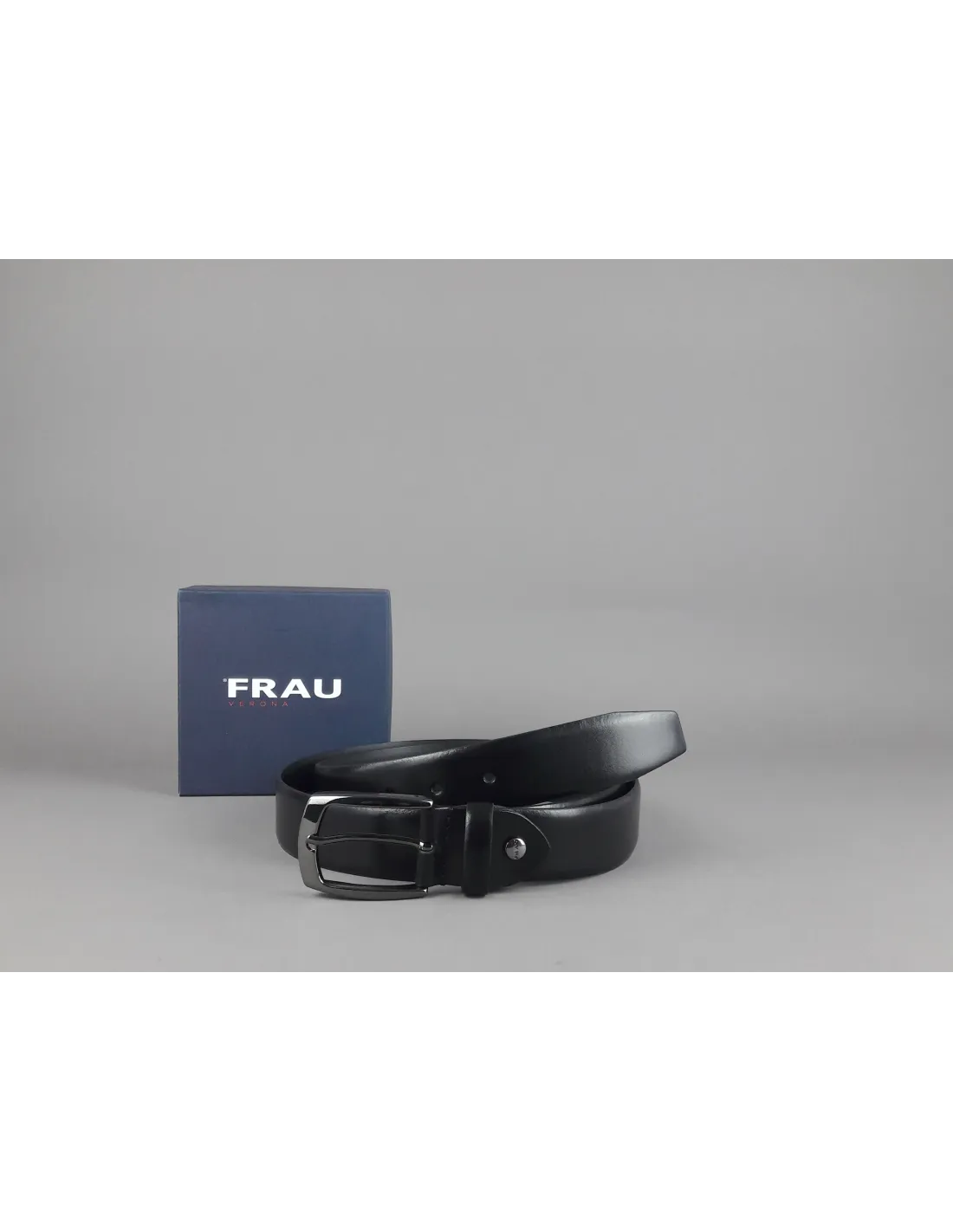 Frau, Cintura uomo in pelle Nera, accorciabile con vite, fibbia in metallo cromato.