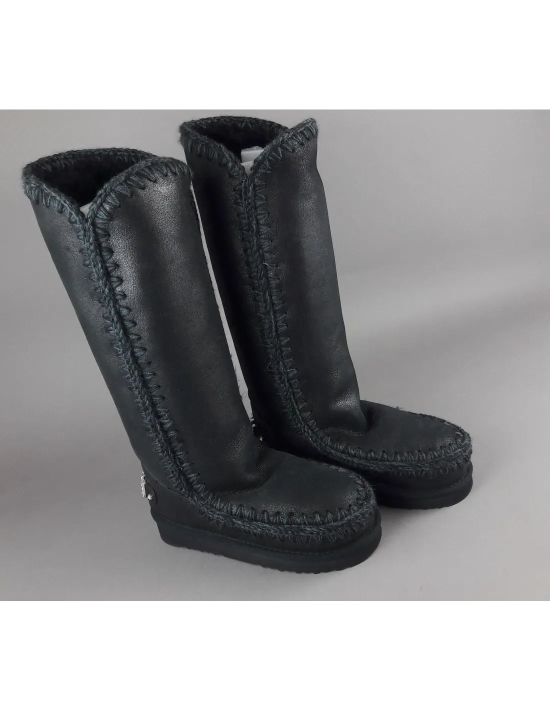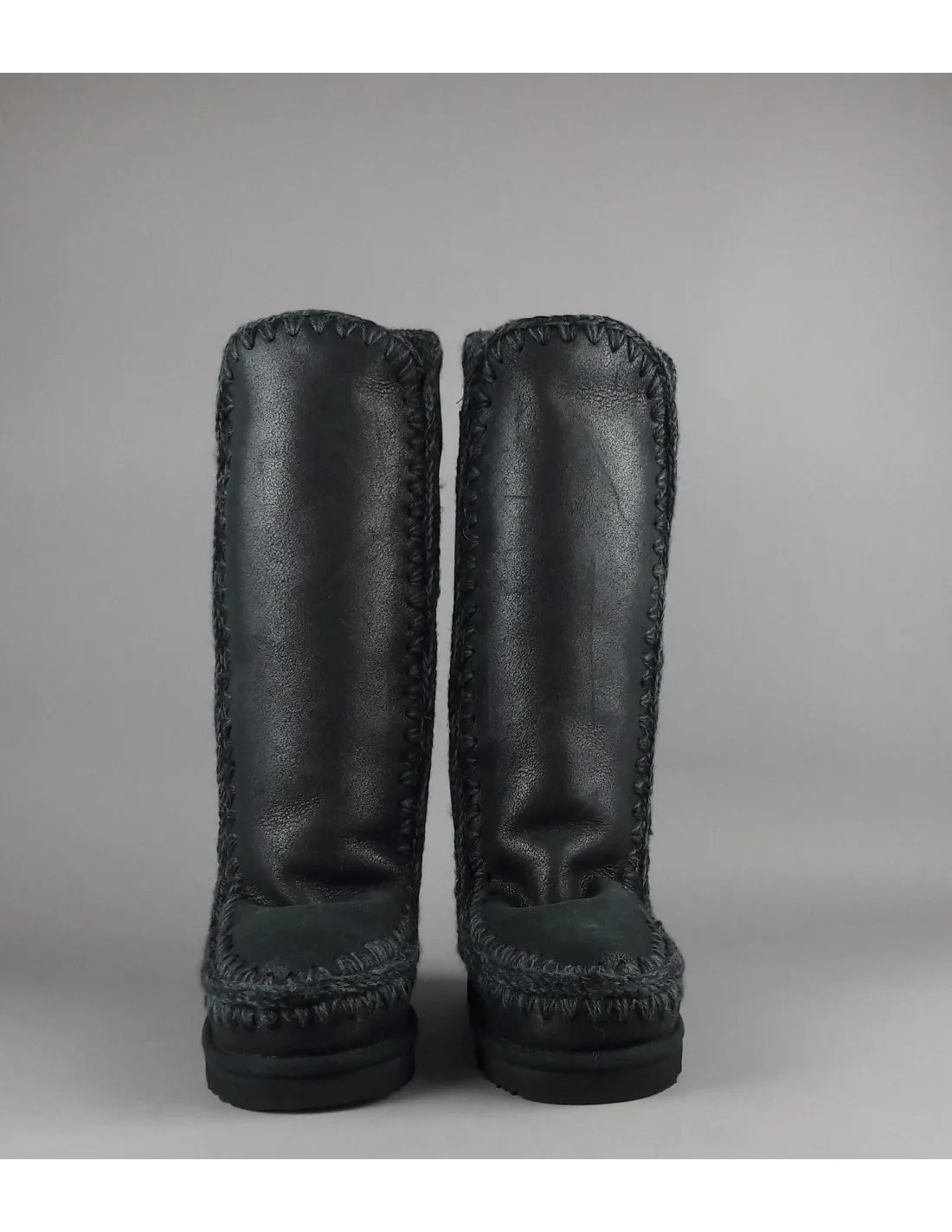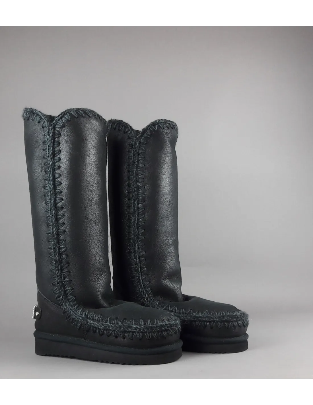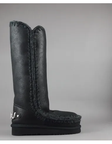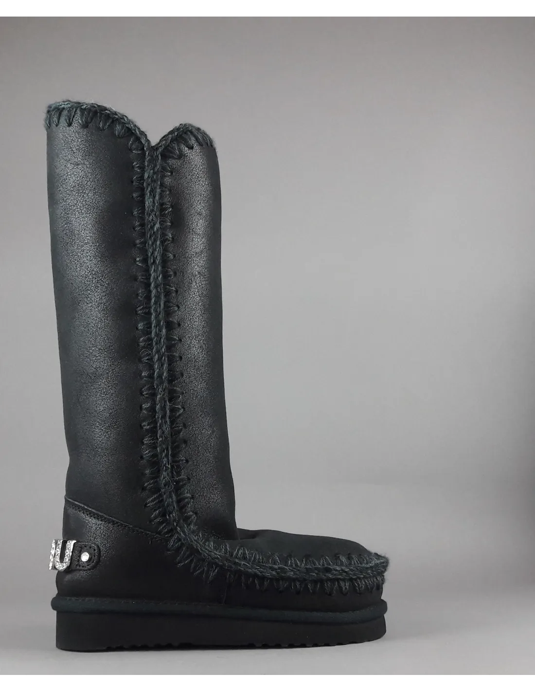 Collezione invernale, Mou eskimo 40 donna, montone double face metal cracked, logo metallo con strass posteriore, dettagli all'uncinetto lavorati a mano, tallone rinforzato, altezza 40 cm, fondo gomma EVA.