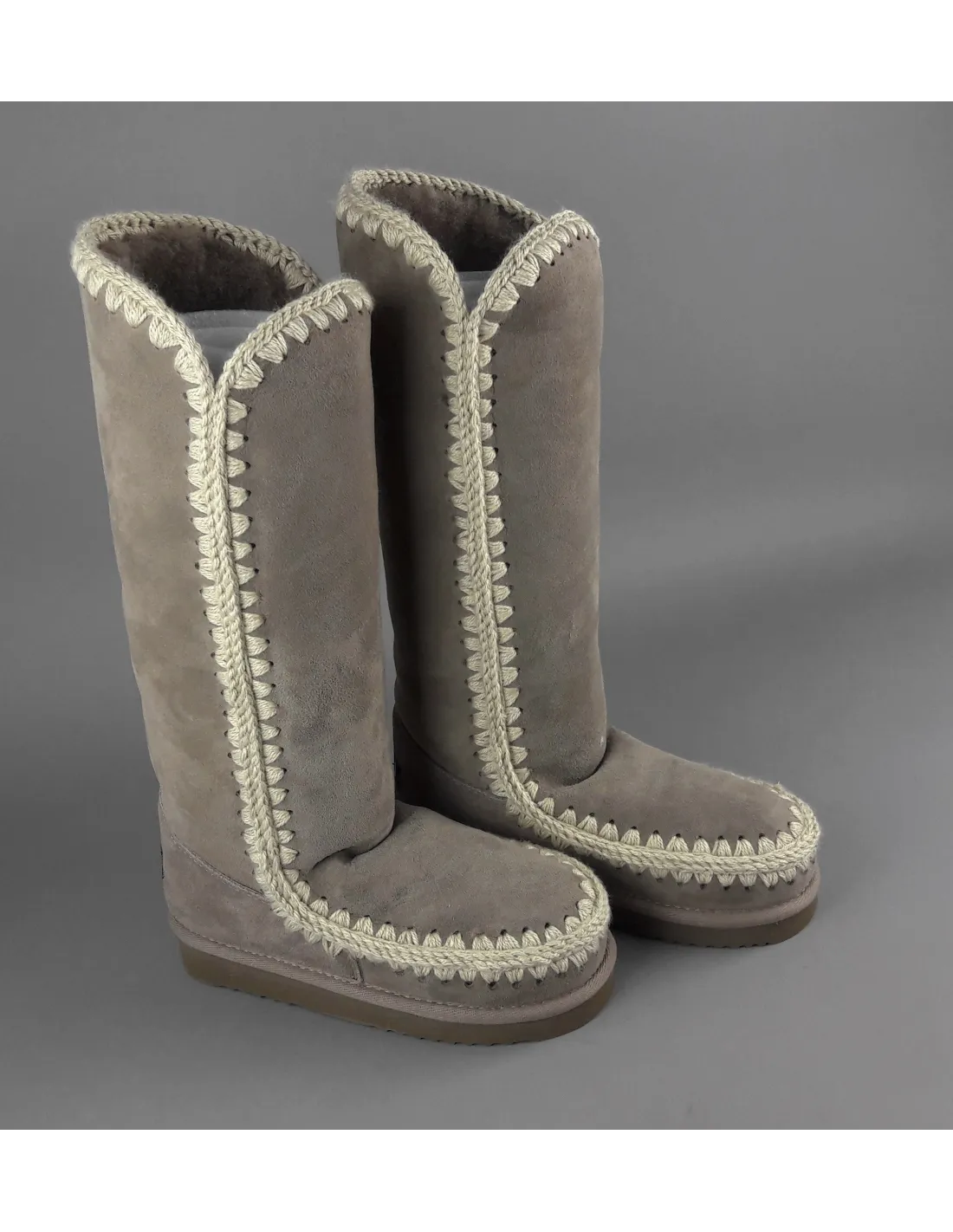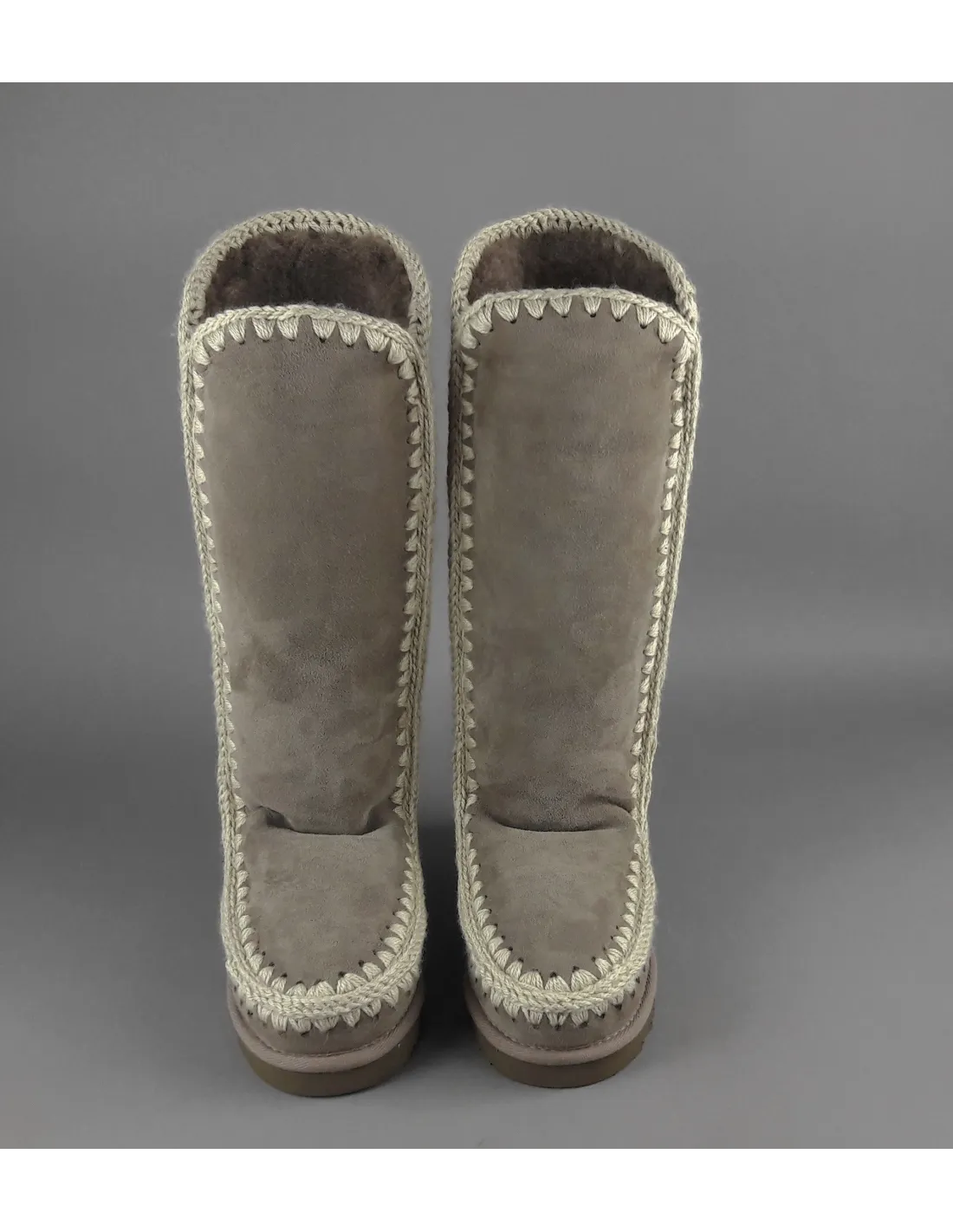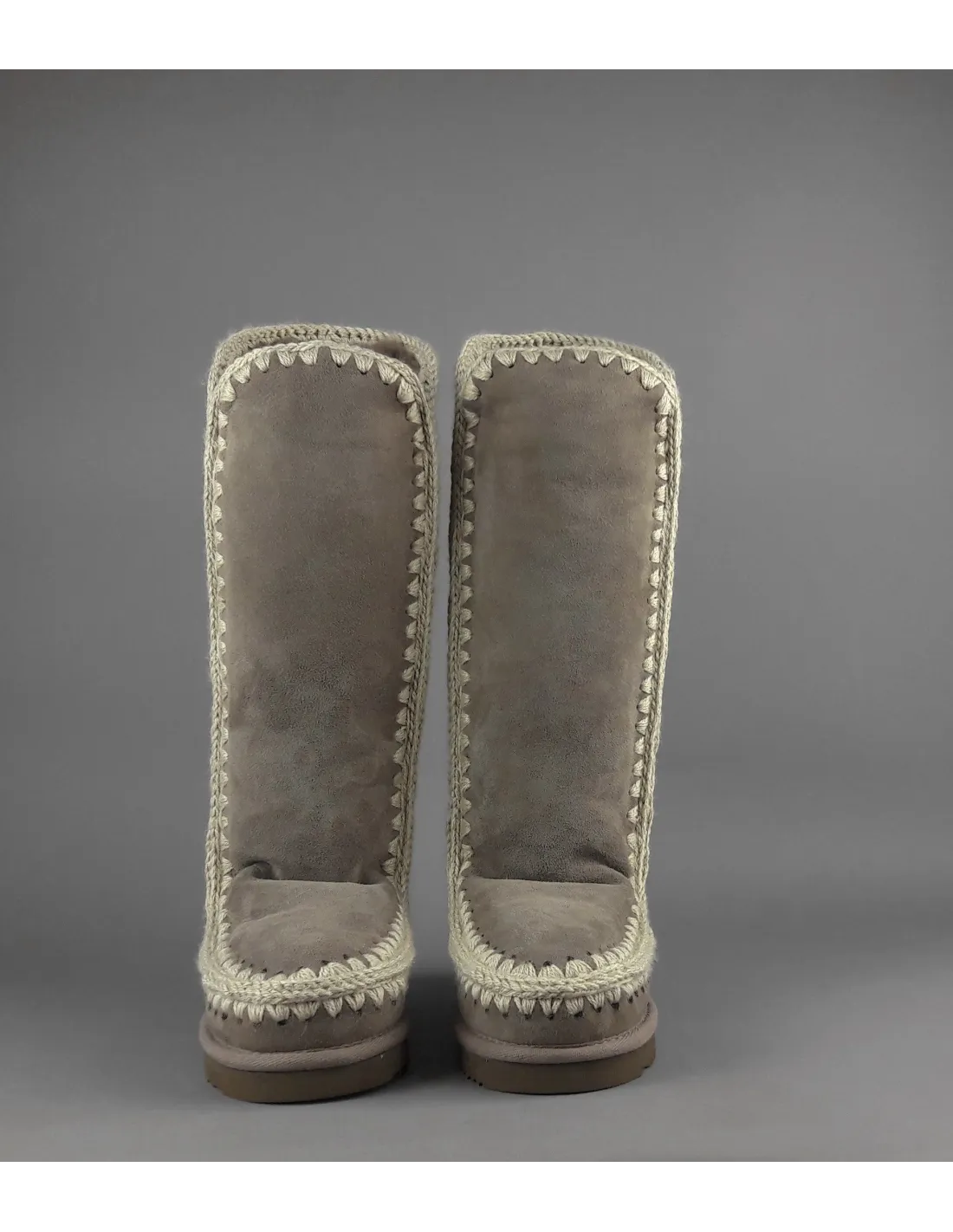 Collezione invernale, Mou eskimo 40 donna, montone double face, logo etichetta posteriore, dettagli all'uncinetto lavorati a mano, tallone rinforzato, altezza 40 cm, fondo gomma EVA.