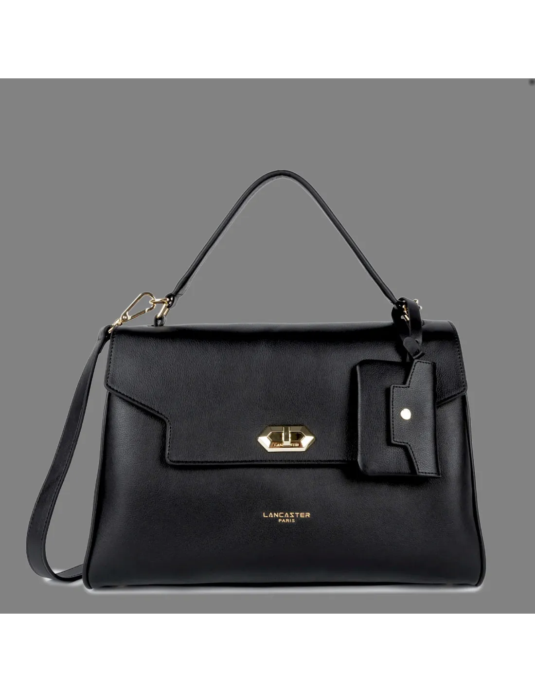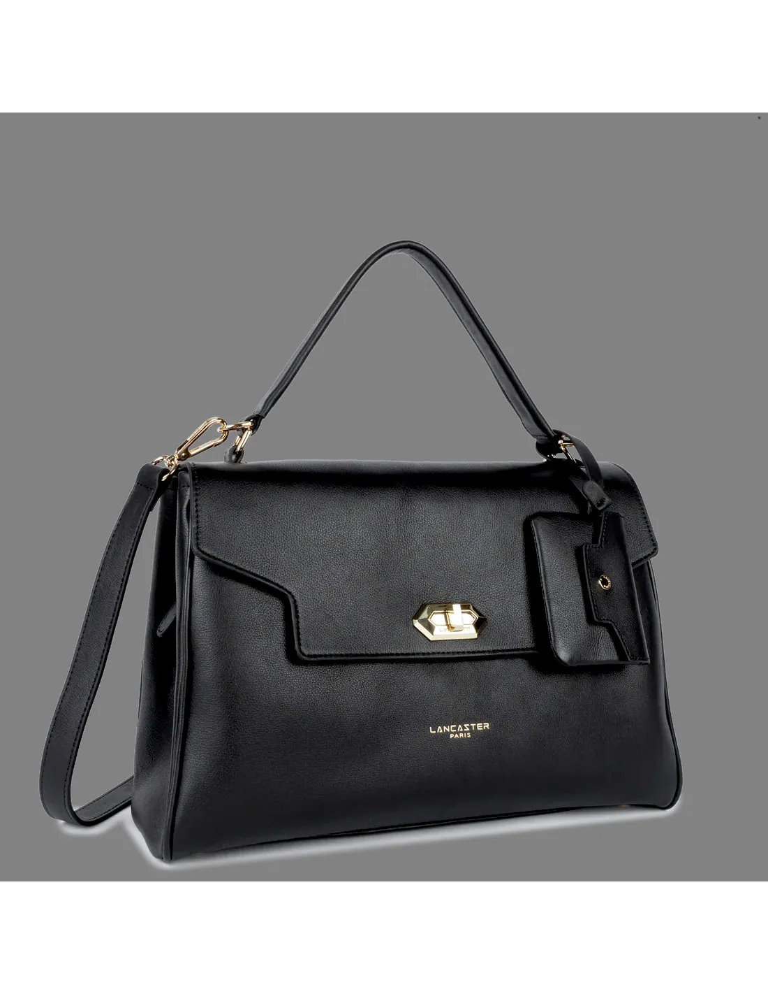Collezione invernale, Borsa a mano donna Lancaster Paris, pelle di vitello pieno fiore, patta con chiusura, una tasca posteriore esterna con chiusura magnetica, una tasca posteriore esterna con zip, una tasca interna con zip, una doppia tasca interna semplice e un portacarte rimovibile. Si può portare a mano, a spalla o a tracolla.