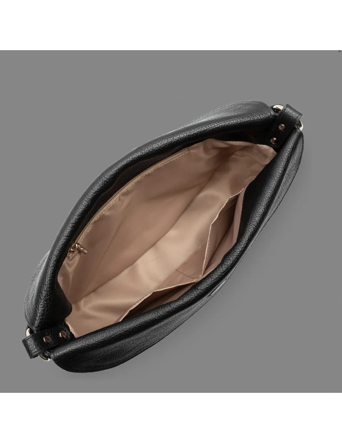 Collezione invernale, Borsa a spalla donna Lancaster Paris, pelle di vitello granulata. Presenta una tasca esterna posteriore con zip, una tasca interna con zip e una doppia tasca interna semplice. Può essere portata a spalla o a tracolla.