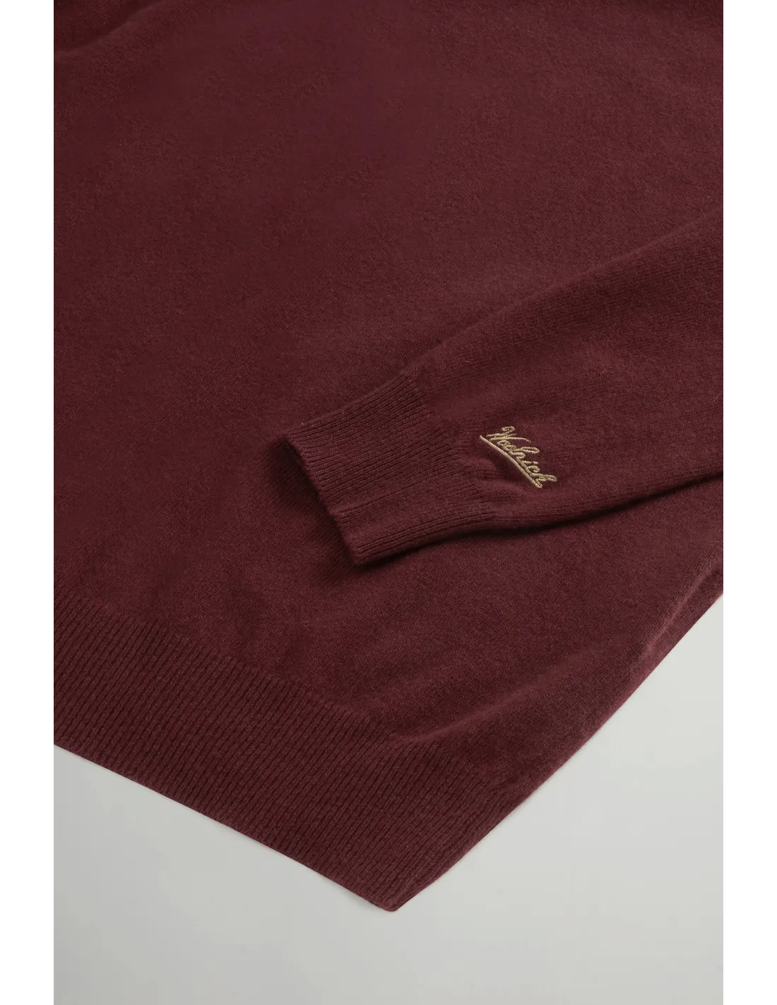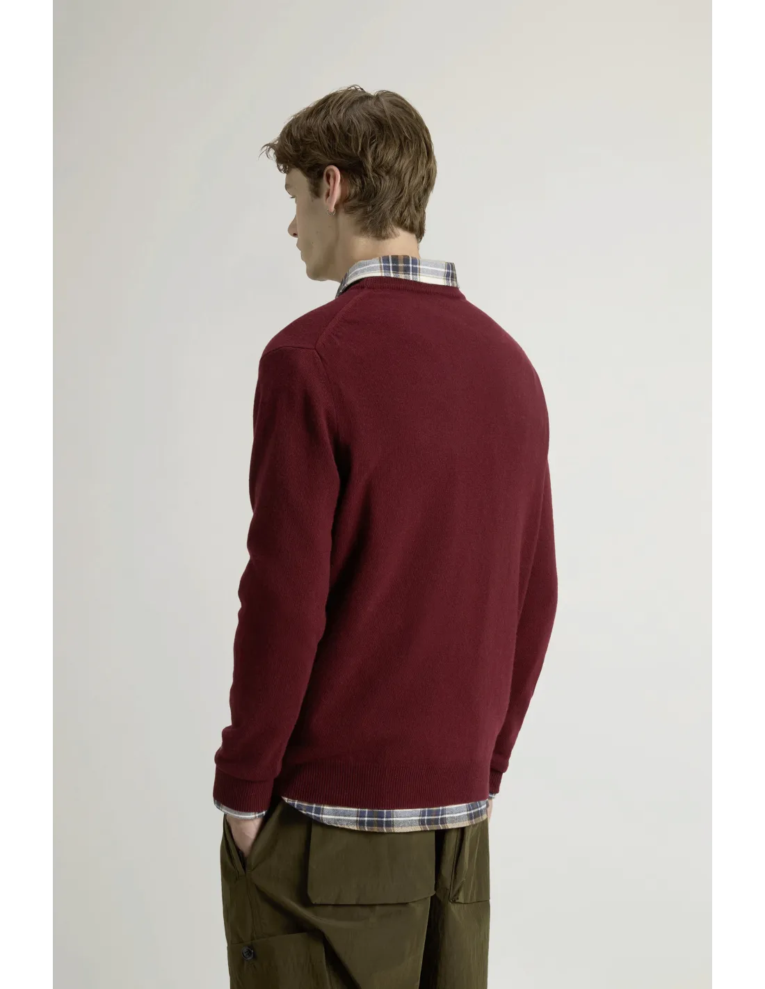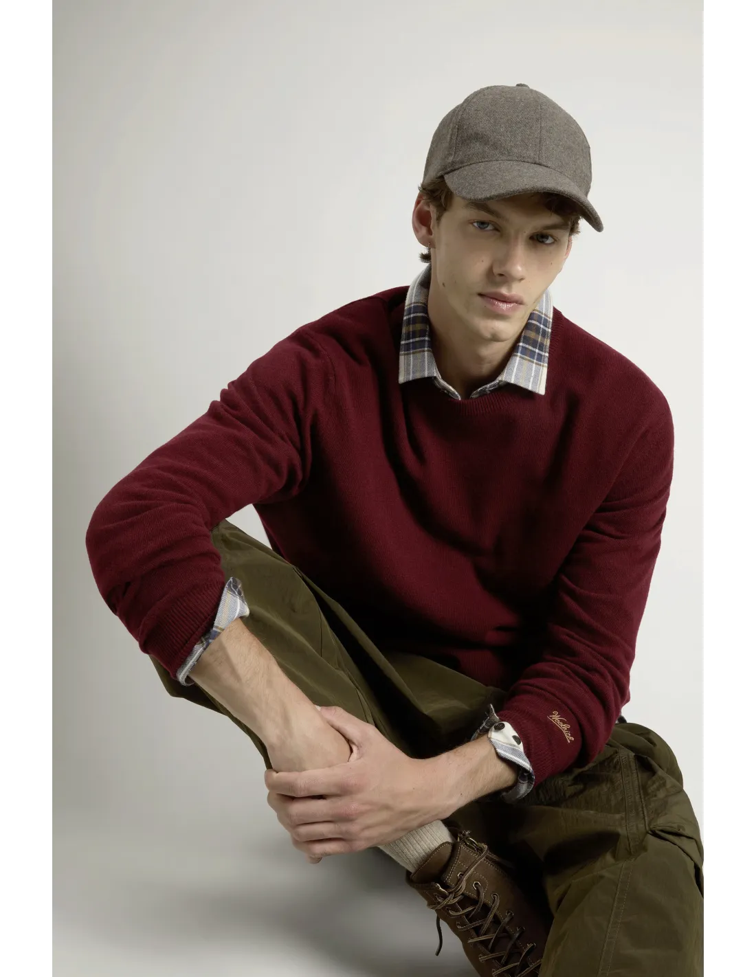 Collezione invernale, Maglione uomo girocollo in lana lambswool di agnello, girocollo e polsini a coste, logo Woolrich ricamato sulla manica.