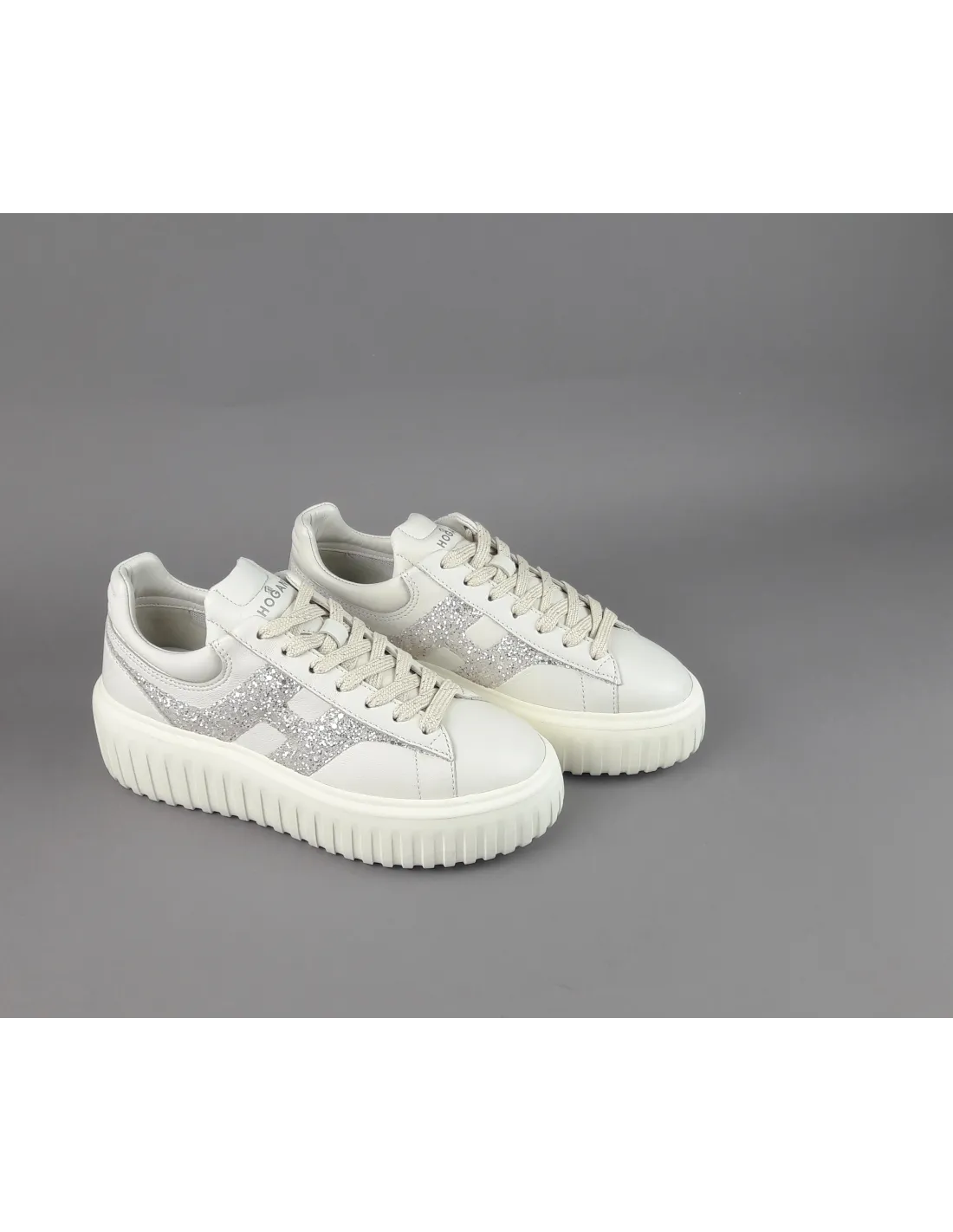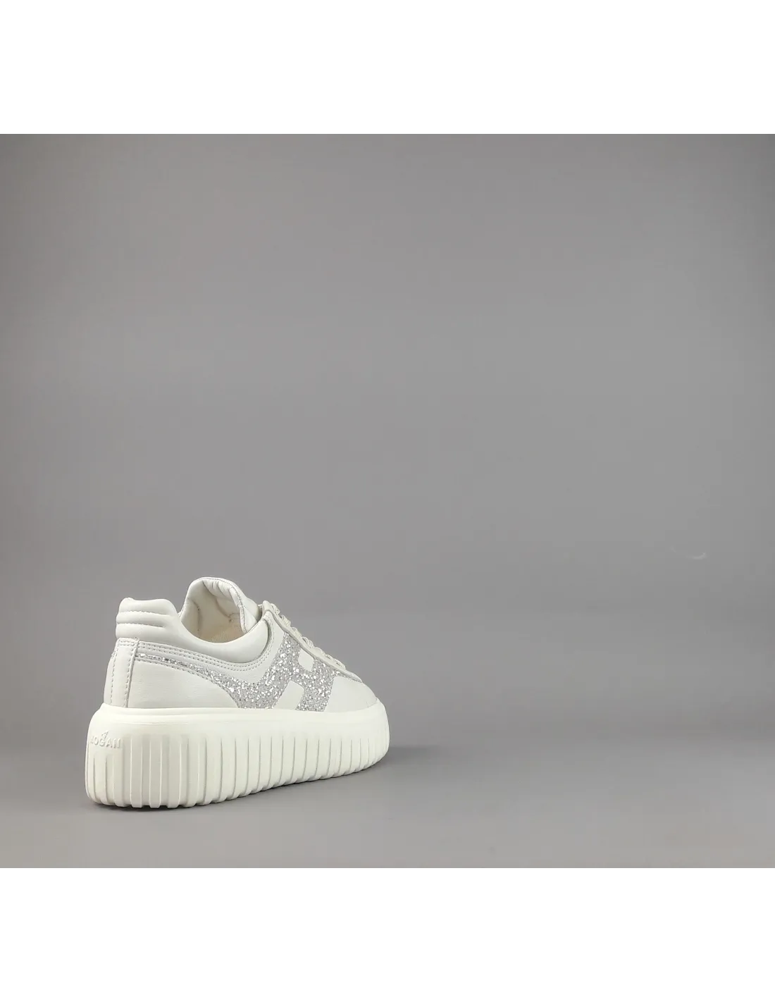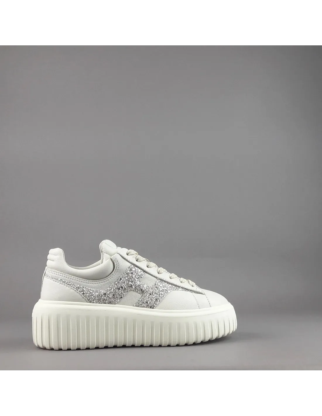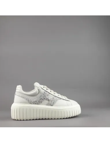Collezione estiva, sneakers donna H-STRIPES H651, pelle nappa, h in glitter argento, spoiler in tinta, fussbett in memory foam estraibile, fondo gomma 5,8cm.