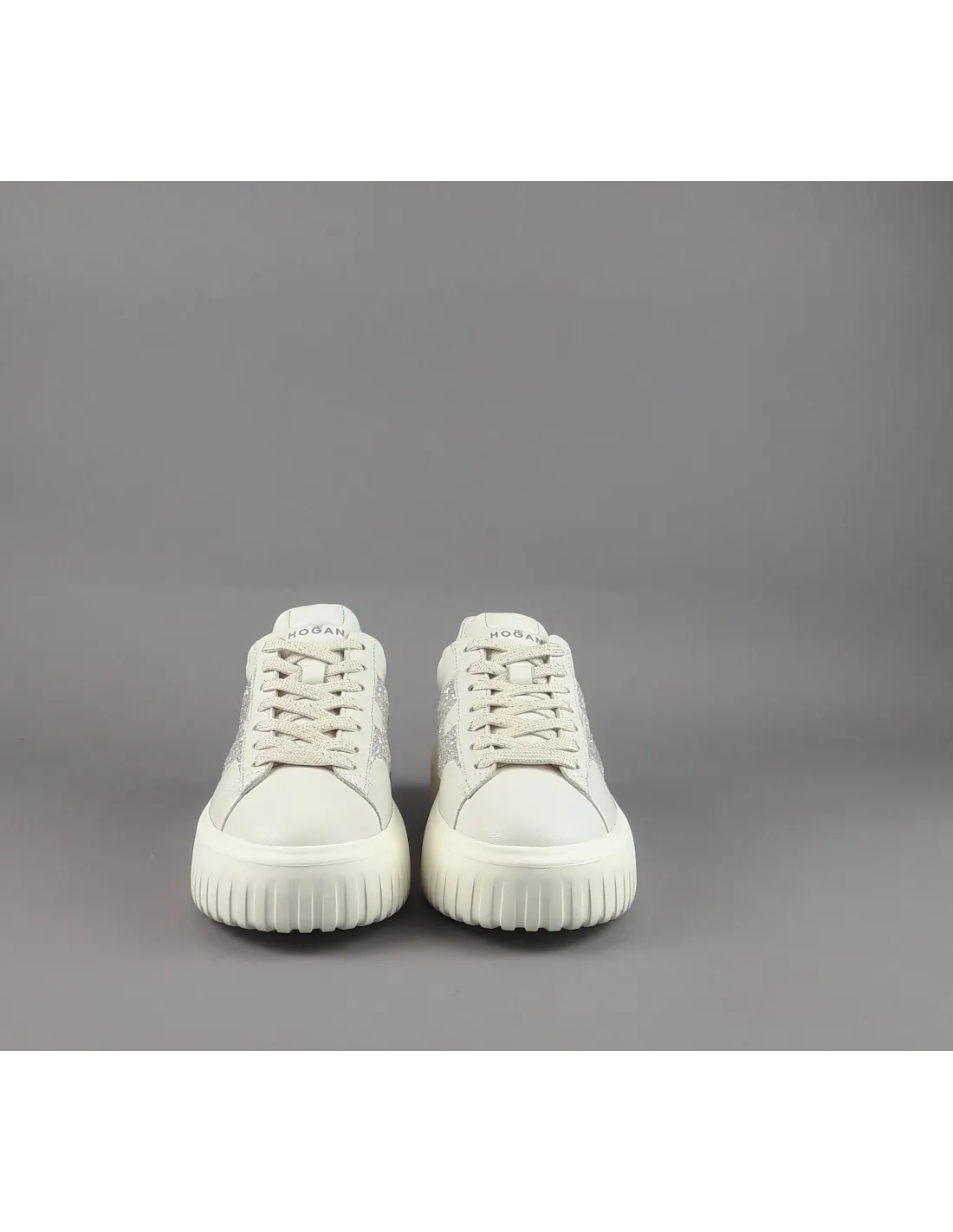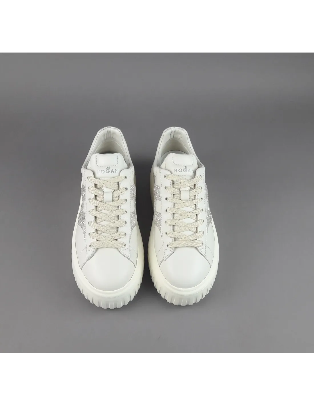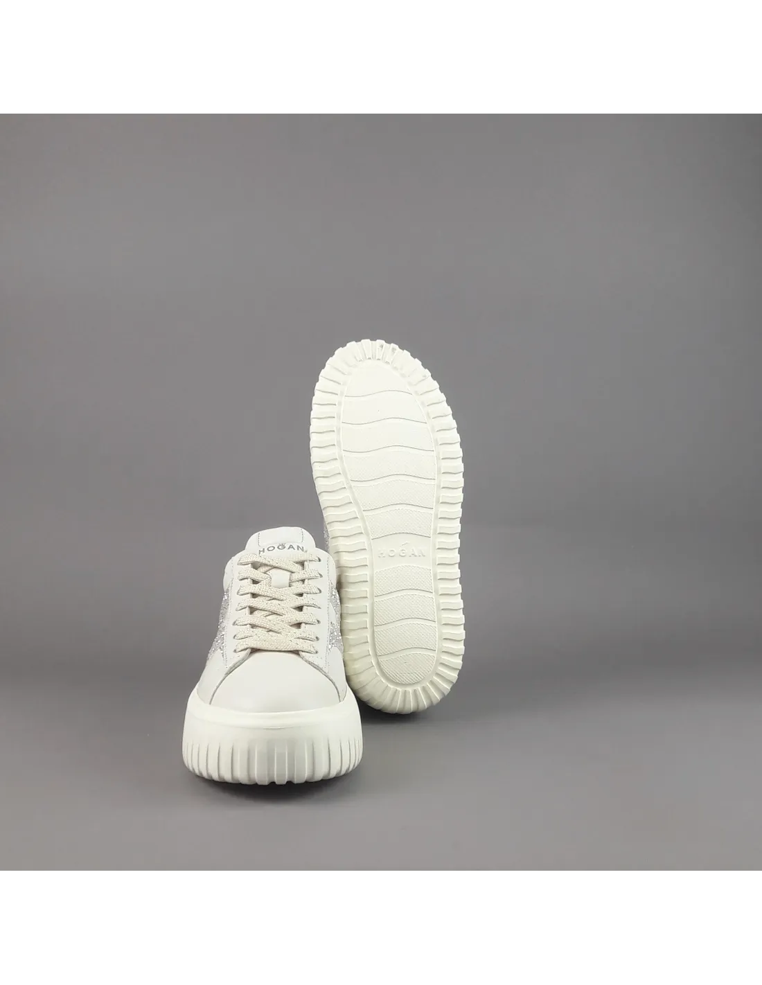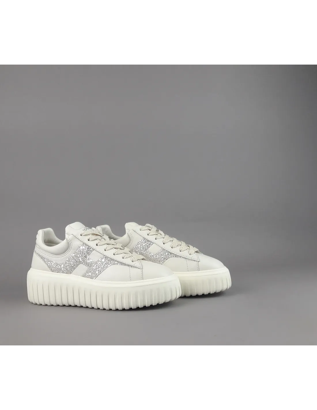 Collezione estiva, sneakers donna H-STRIPES H651, pelle nappa, h in glitter argento, spoiler in tinta, fussbett in memory foam estraibile, fondo gomma 5,8cm.