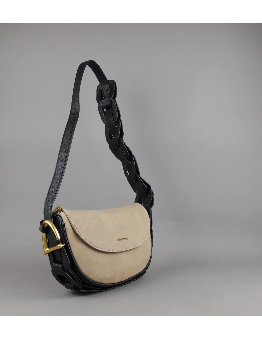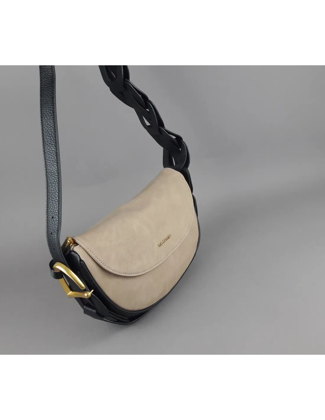 Gio Cellini collezione estiva, borsa a spalla donna in poliuretano effetto camoscio, tracolla centrale, chiusura con patta cerniera, logo metallo frontale