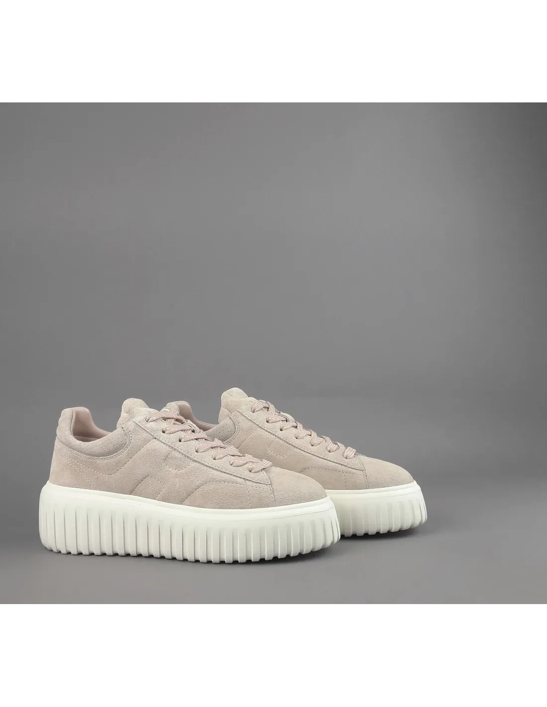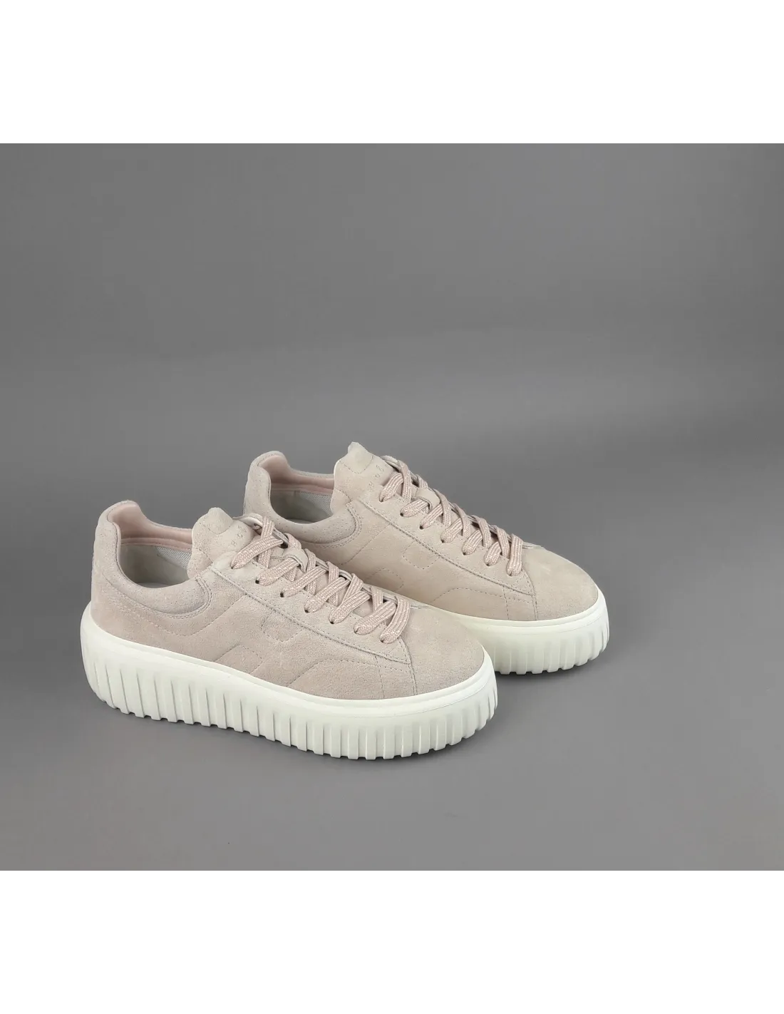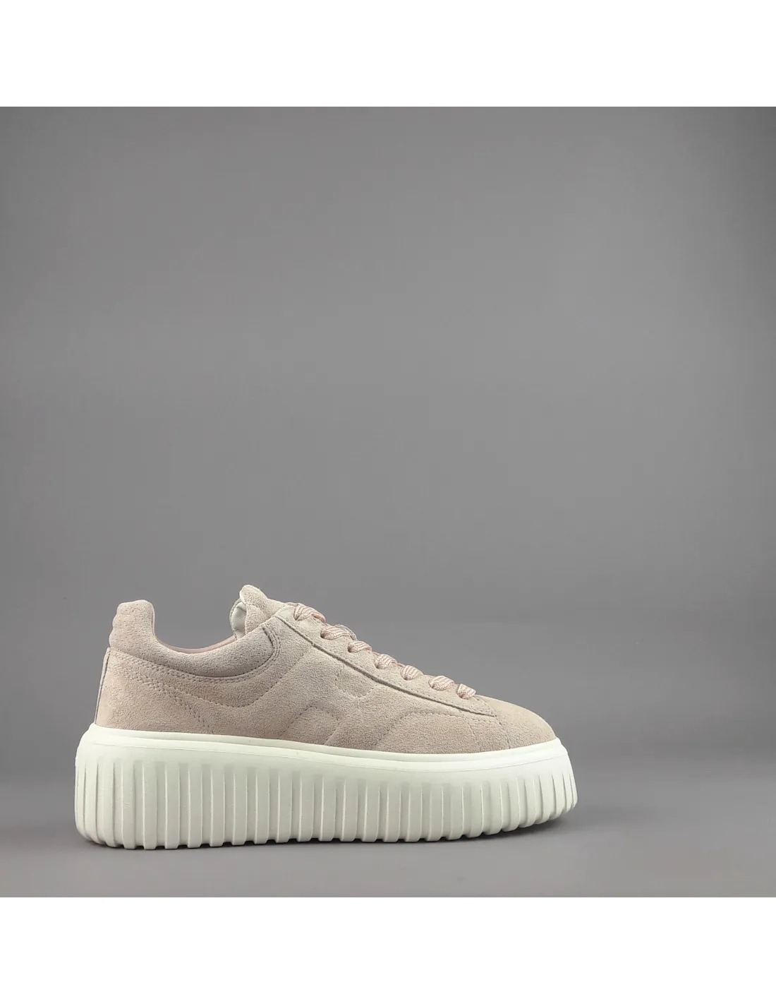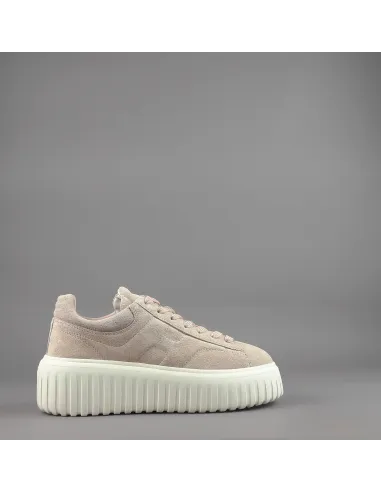 Hogan collezione estiva, sneakers donna H-STRIPES H651, in camoscio, h imbottita, spoiler in tinta, fussbett in memory foam estraibile, fondo gomma 5,8cm.