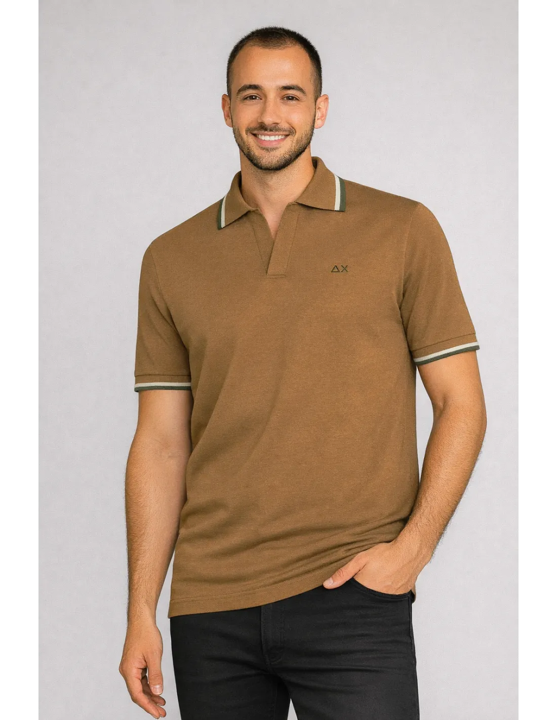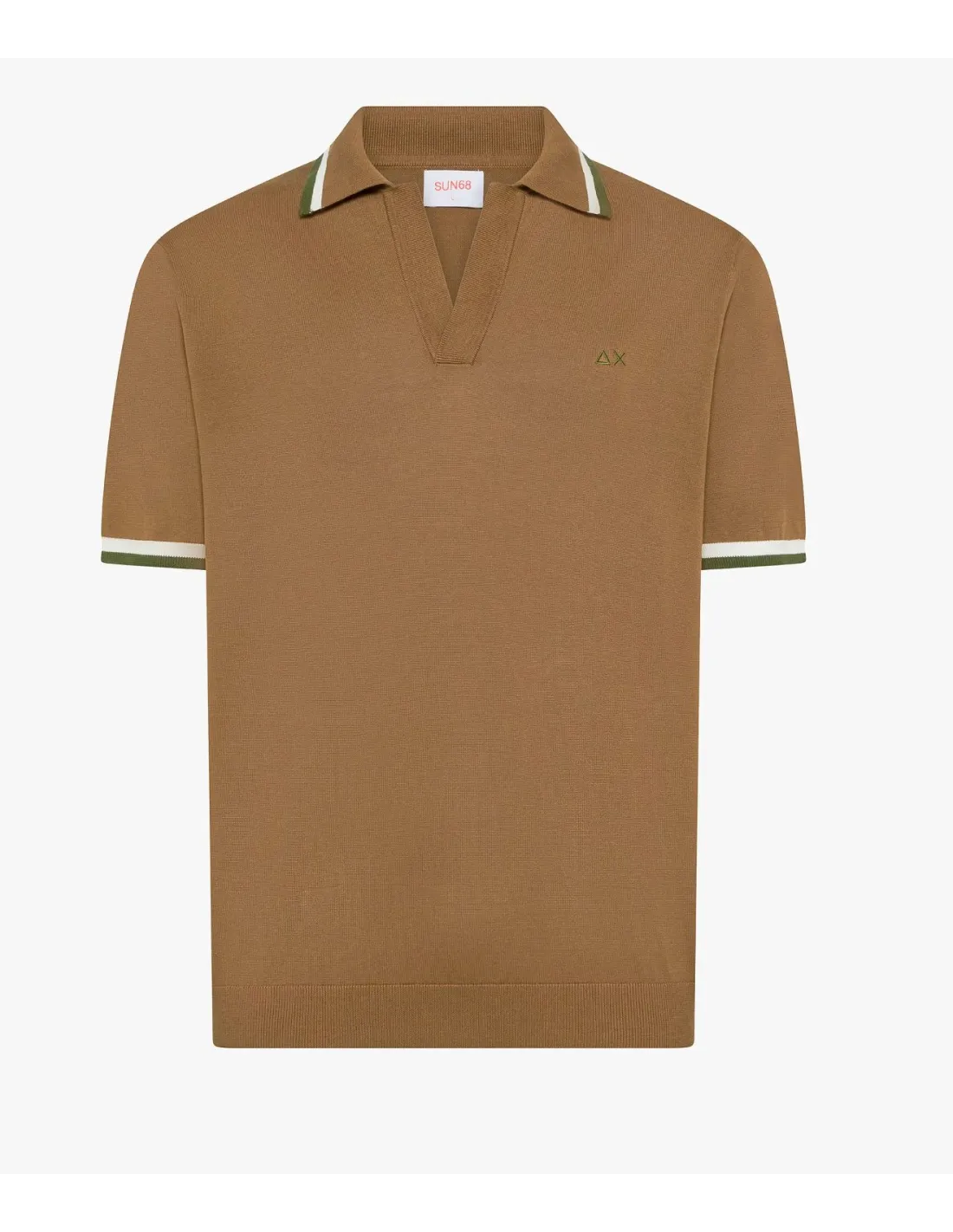 Sun 68 collezione estiva, maglia polo uomo, in cotone, collo a polo senza bottoni, bordi a coste con righe a contrasto, logo cucito, vestibilità regular