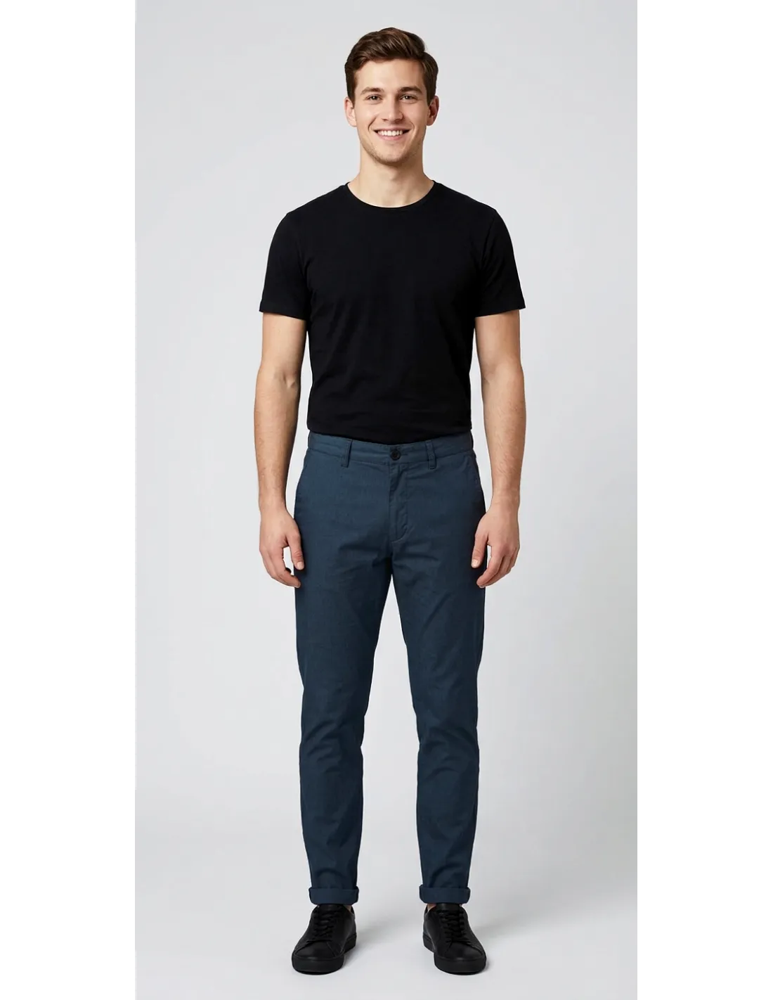 Clark collezione estiva, pantalone uomo Mark, in tessuto popeline stretch, tasche laterali america, tashe posteriori a filo con bottoni, fondo con risvolto, fit slim.