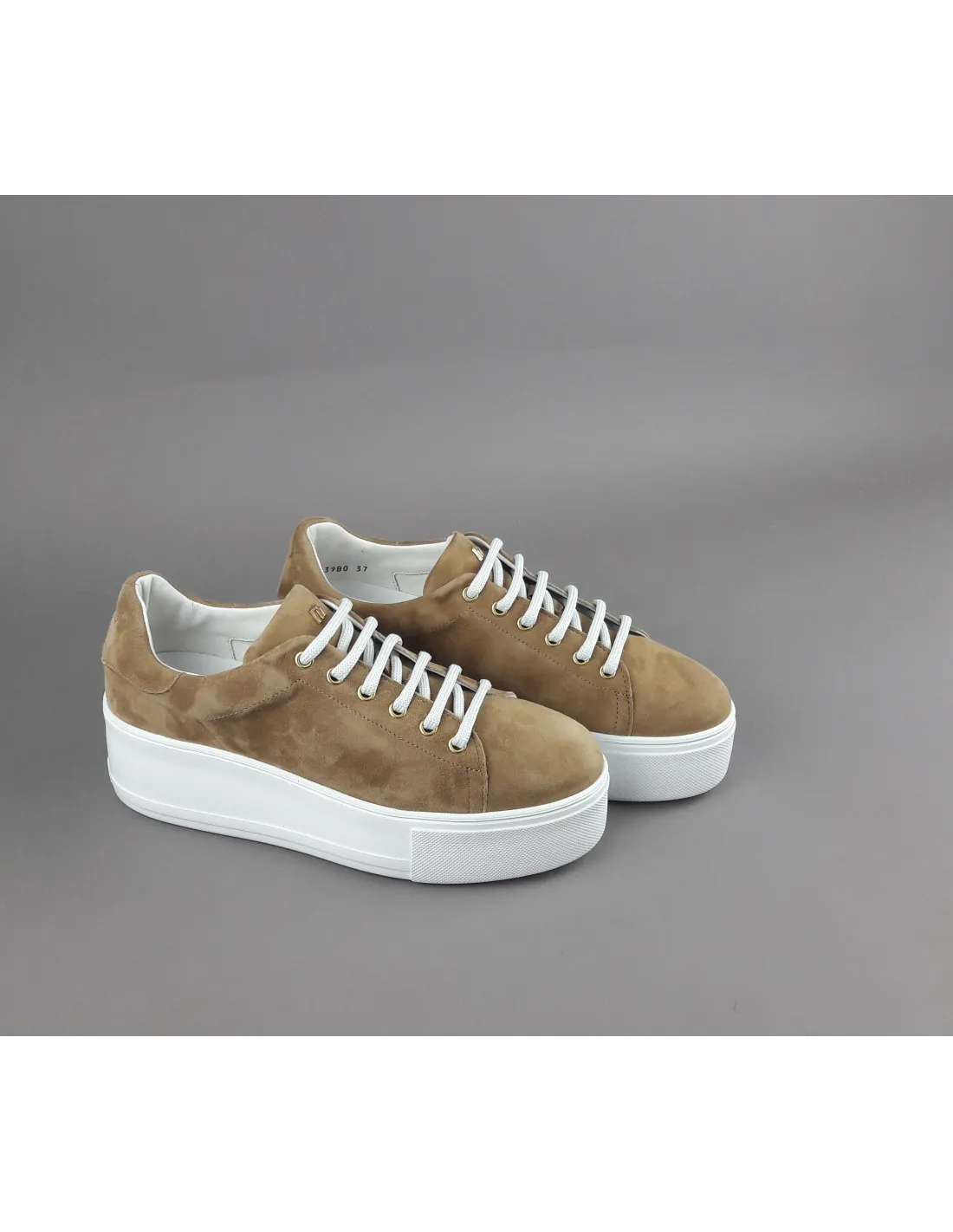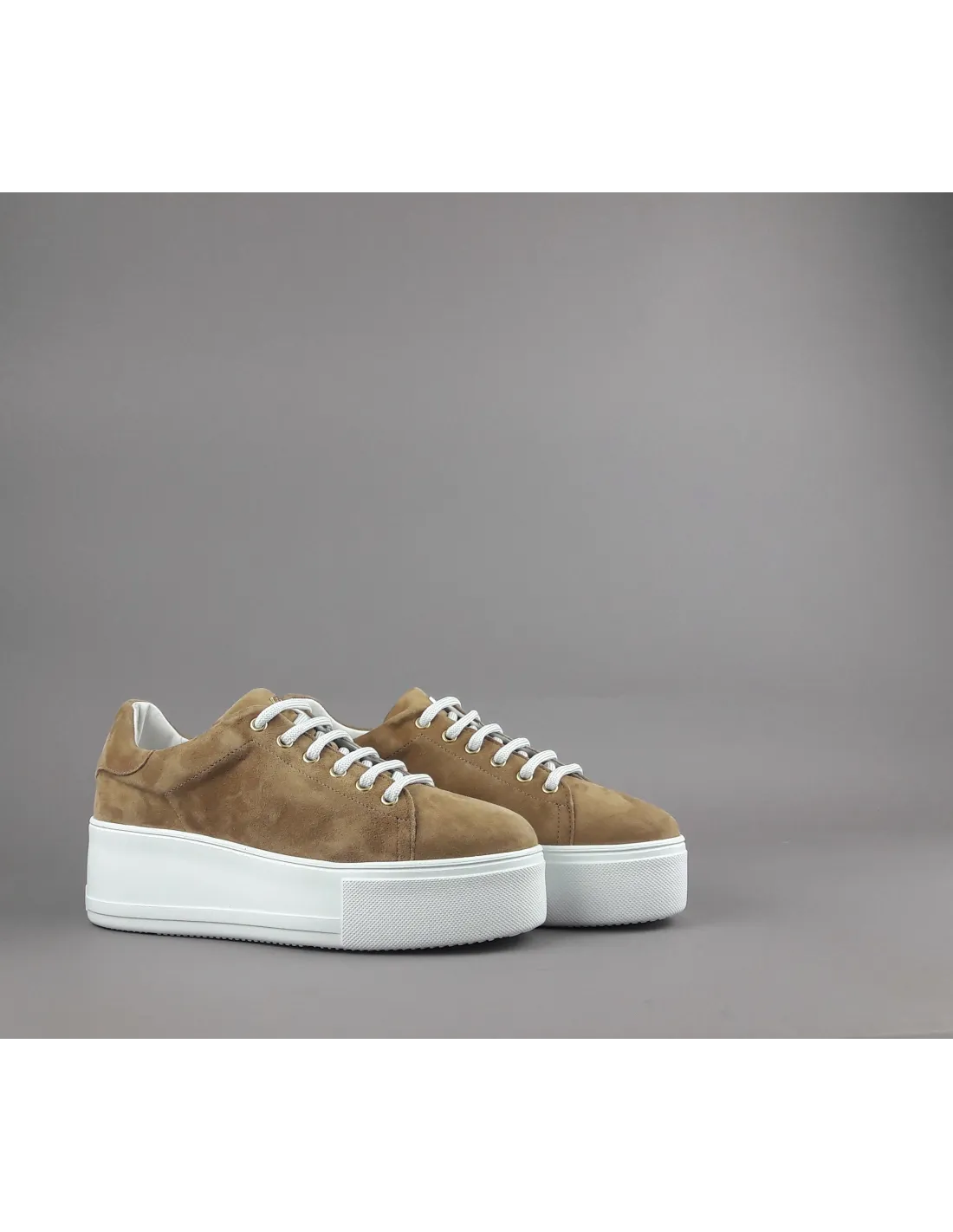 Frau collezione estiva, sneaker platform donna in camoscio, sottopiede in tessuto estraibile, logo stampato al tallone, fondo gomma platform 5,5 cm.