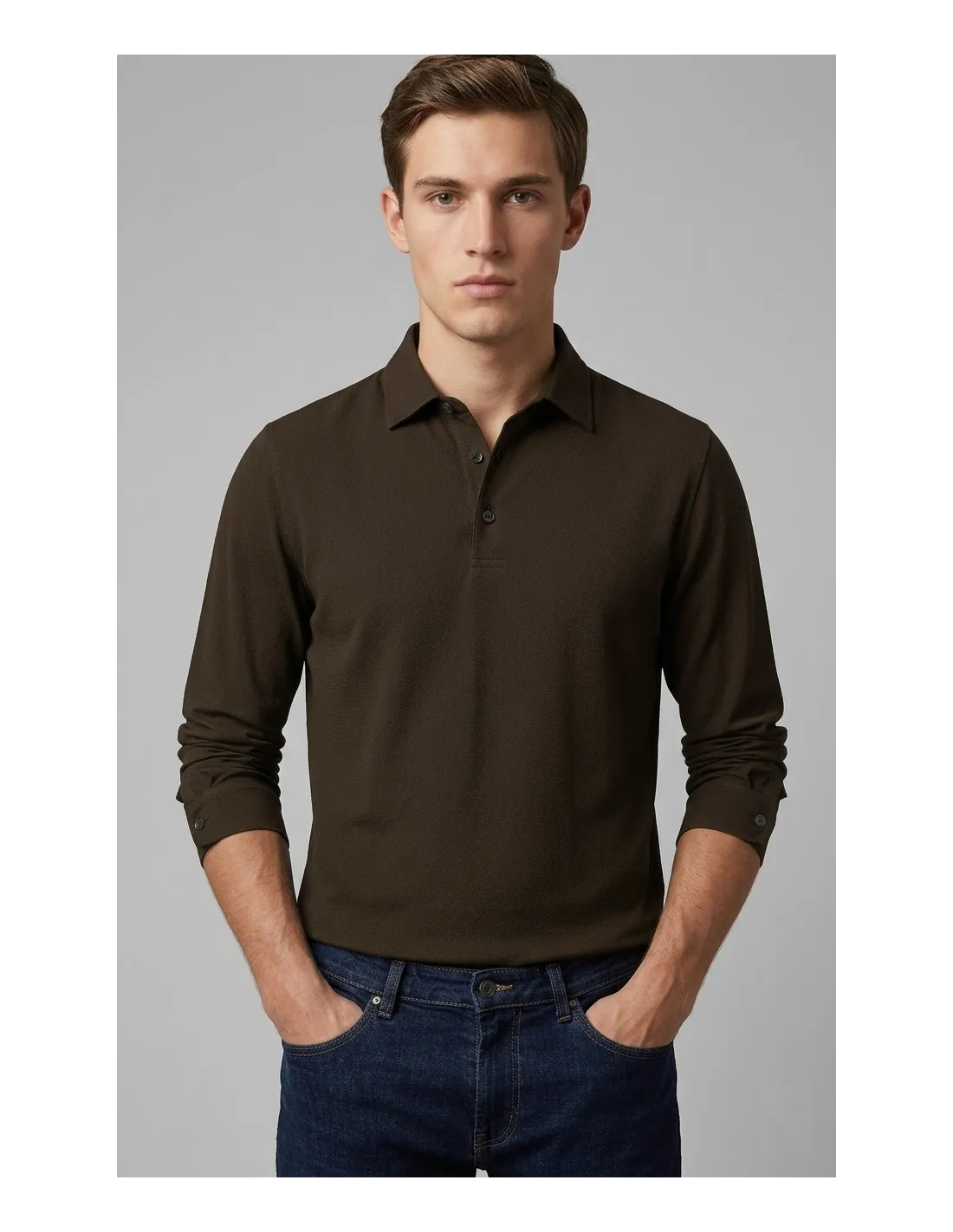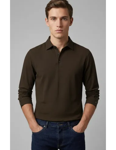 Filippo De Laurentiis collezione estiva, polo uomo manica lunga, in crepe di cotone leggero, tre bottoni, collo con lavorazione paramontura, maniche lunghe con bottone, fondo a coste, vestibilità regular