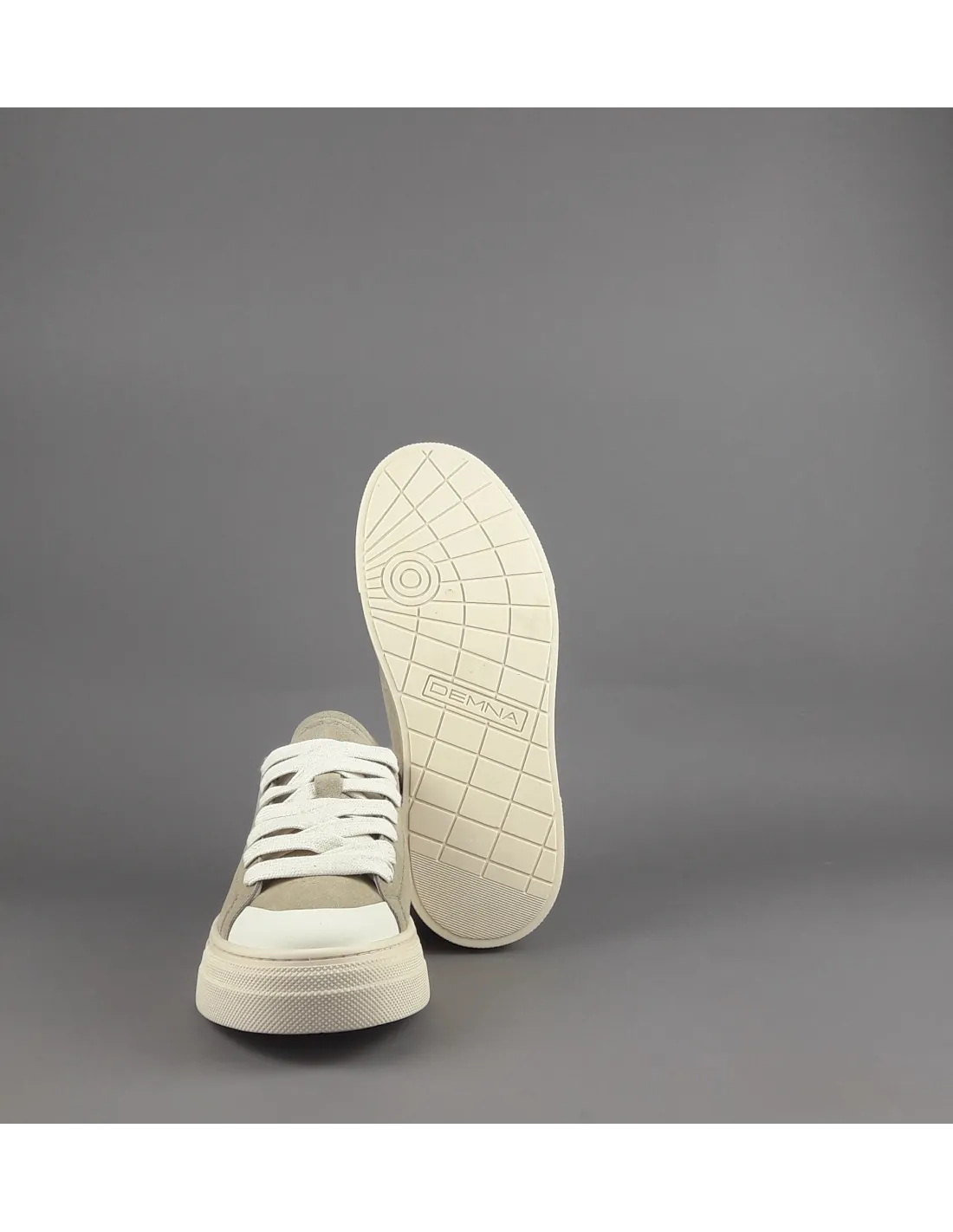 DemnaDemna collezione estiva, Sneakers uomo in crosta di camoscio, dettagli puntale in gomma, logo sulla linguetta, spoiler logato, fussbett estraibile, fondo gomma platform.