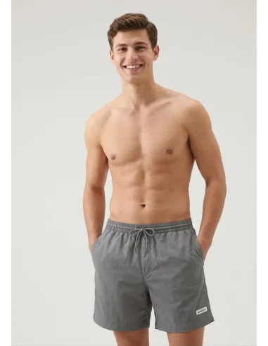 Woolrich collezione estiva, costume da bagno uomo in nylon, tinto capo, elastico con coulisse in vita, tasche laterali, tasca sul retro, etichetta logata al fondo, vestibilità regular.