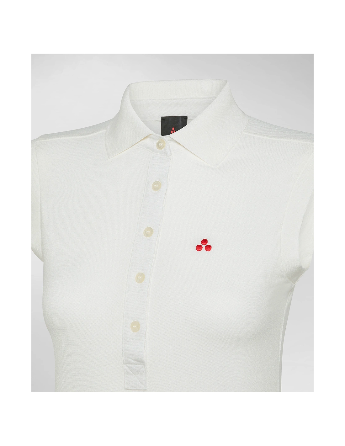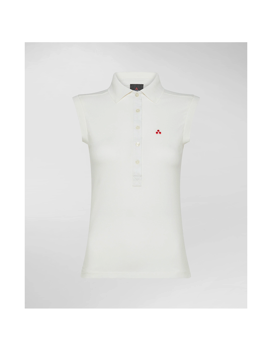 Peuterey collezione estiva, polo donna slim fit in piqué stretch smanicata, chiusura con 5 bottoni, vestibilità slim, logo cucito sul petto.