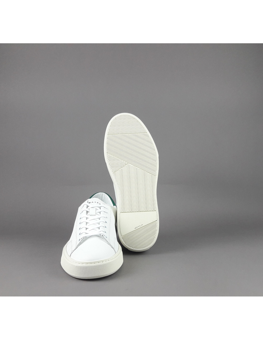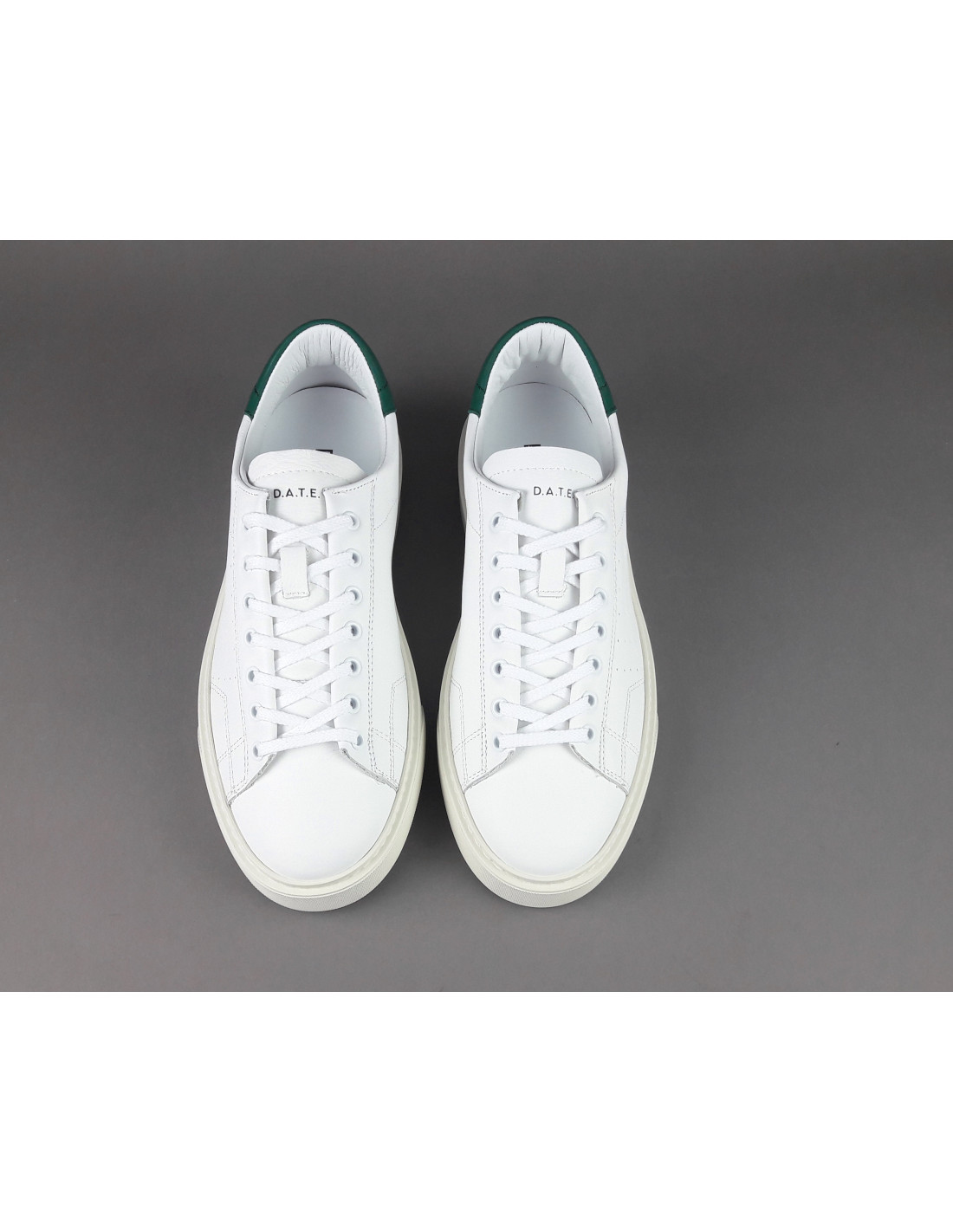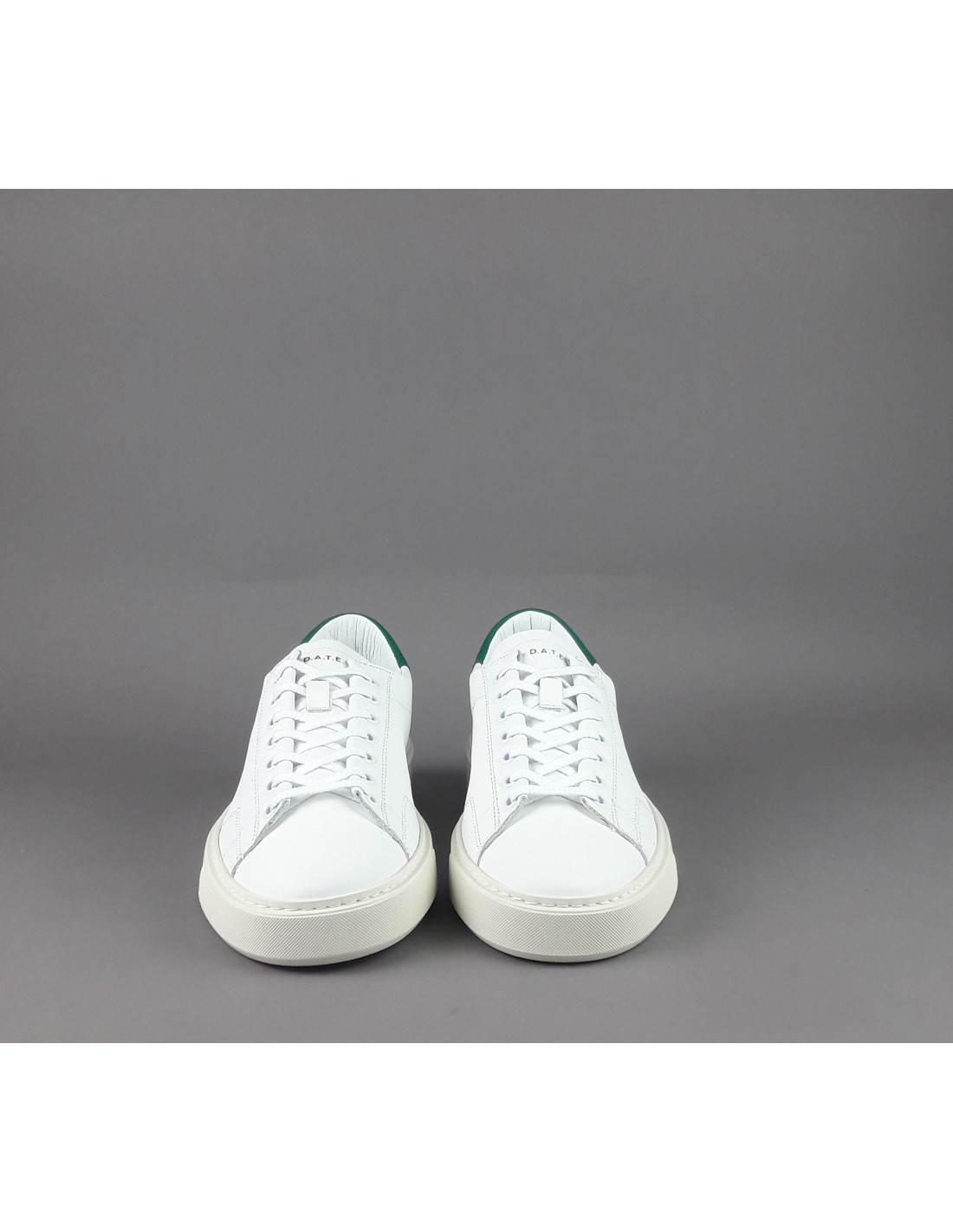 Collezione invernale, Sneakers uomo D.A.T.E. LEVANTE in pelle, forature leterali, logo impresso sulla linguetta, spoiler in pelle verde, soletta interna estraibile di 2.5 cm, calzata regolare, suola in gomma cucita 4 cm.
