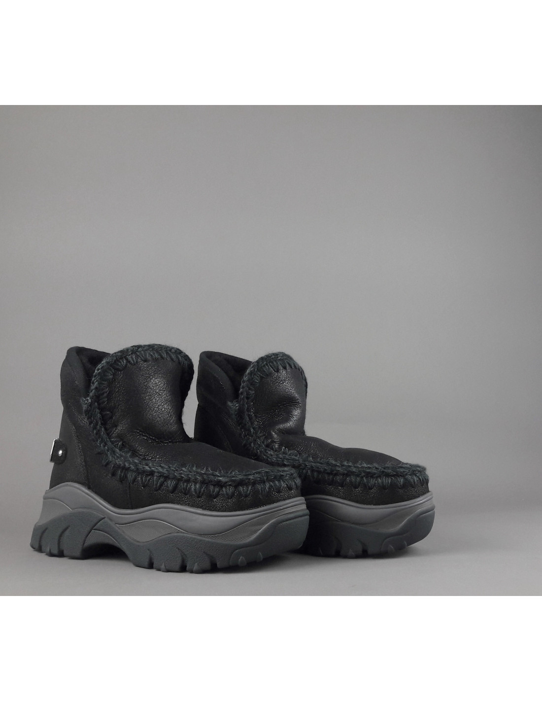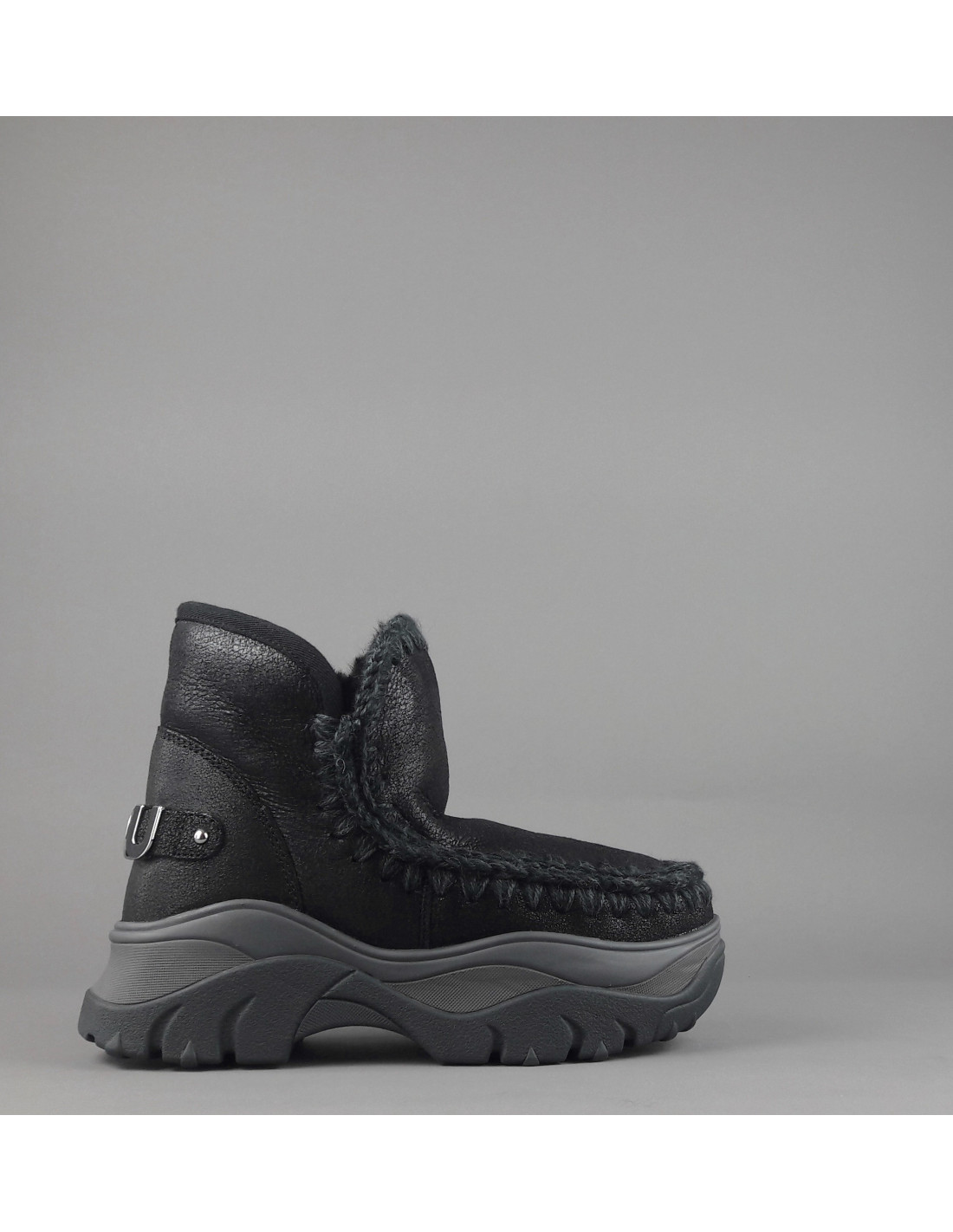 Collezione invernale, Mou Eskimo Chunky Sneakers donna, montone double face metal cracked, logo posteriore metallo, dettagli all'uncinetto lavorati a mano, tallone rinforzato, altezza 18 cm, nuovo fondo alto gomma.