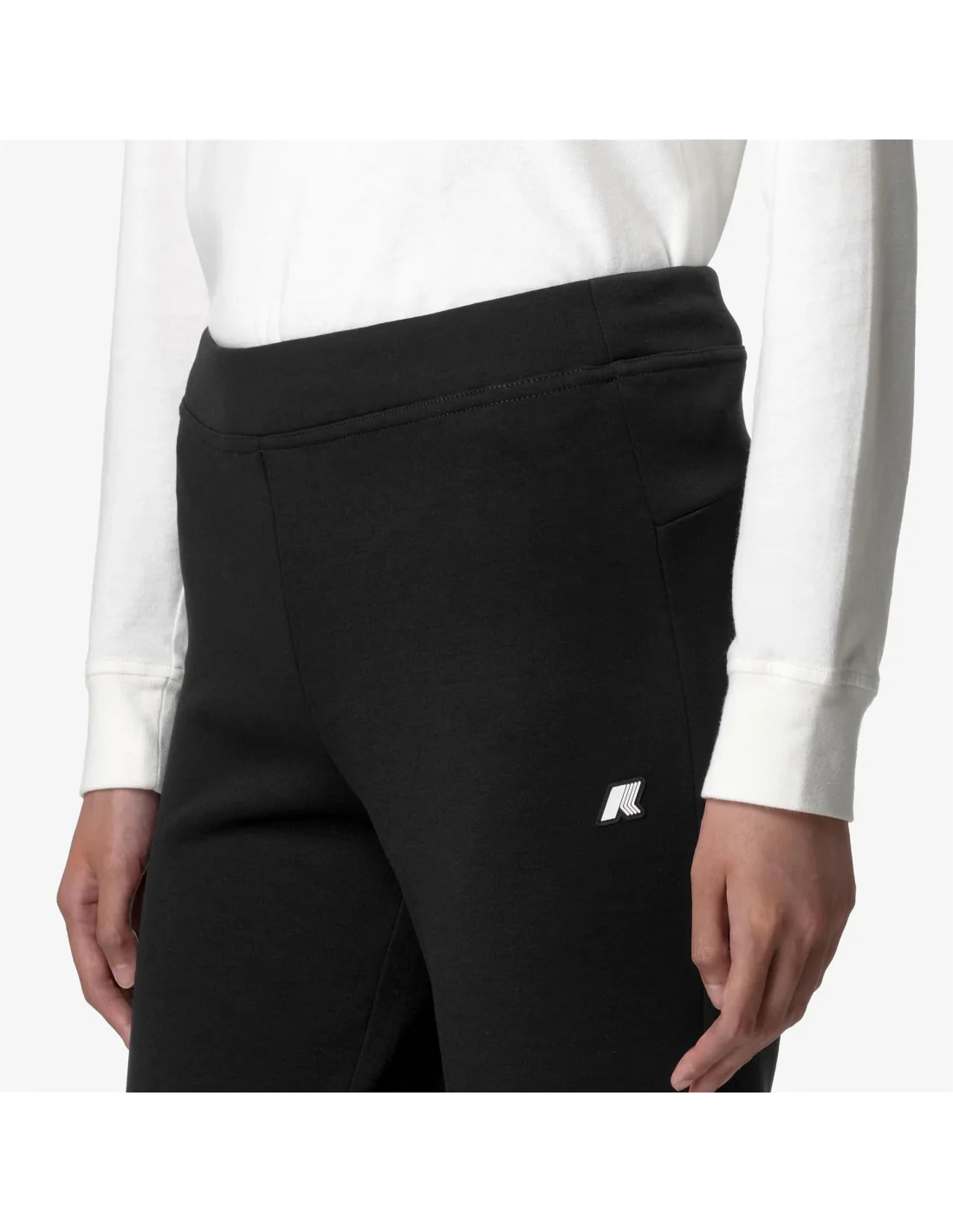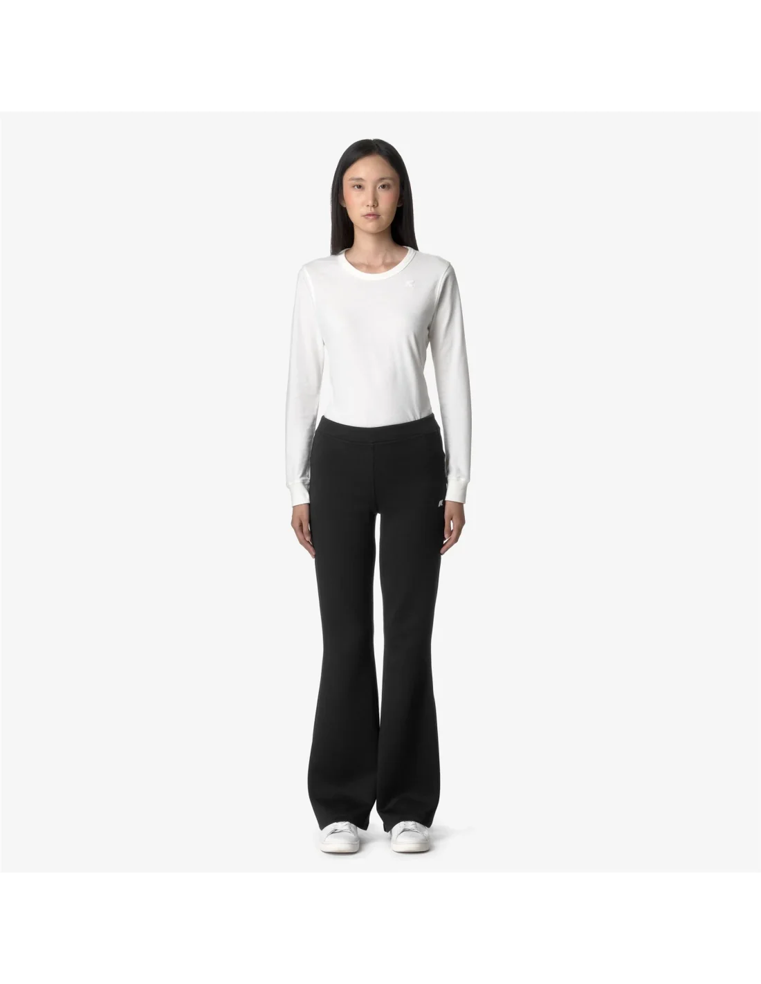 Collezione estiva, K-Way pantalone donna Jenny Light Spacer, tessuto interlock elasticizzato opaco, tasche laterali a filetto, gamba stretta e fondo largo, fit regolare, logo silicone,