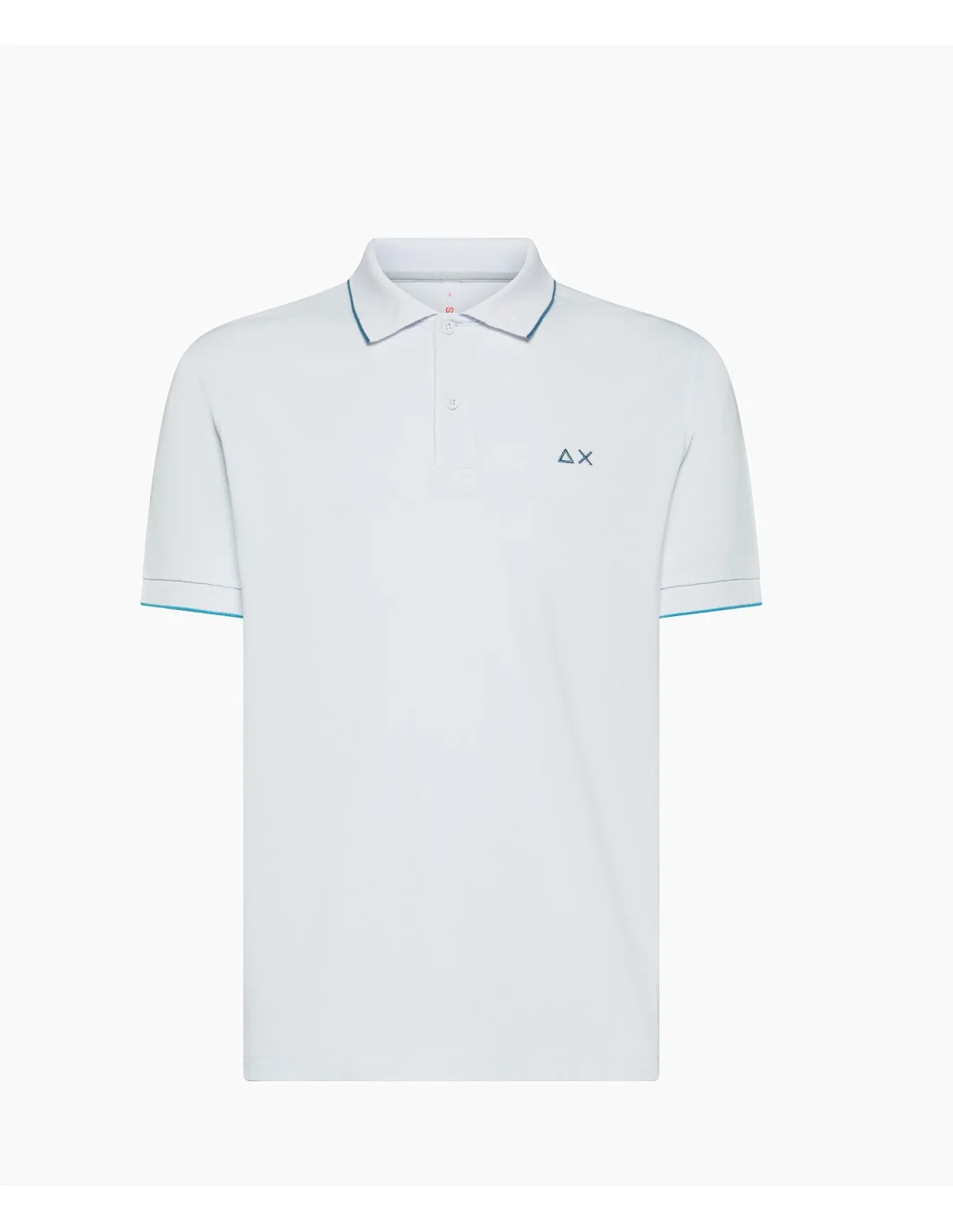 Collezione estiva, polo Sun 68 uomo, in cotone stretch, collo e maniche con strisce in contrasto, manica corta, due bottoni, logo cucito, vestibilità regular