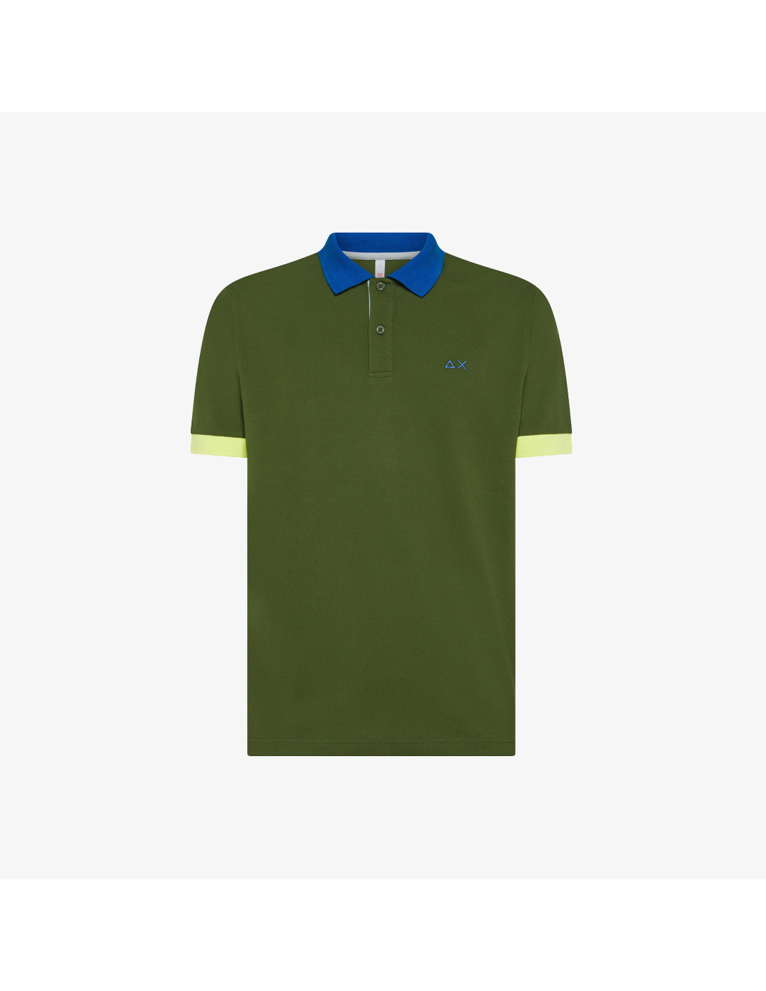 Sun 68 - Polo Uomo 3 Color Way Cotone Stretch Verde Scuro Prezzo 70,00