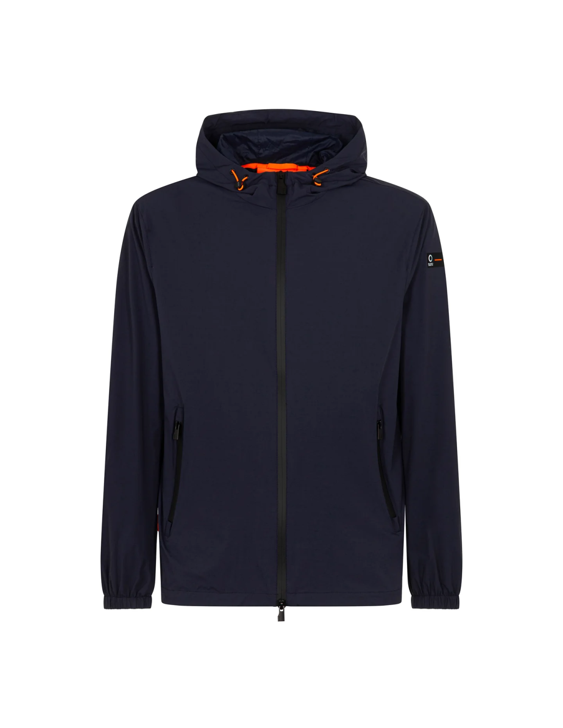 Collezione estiva, Suns giubbino uomo Mexico Stretch, nylon stretch, cappuccio fisso regolabile, fit regolare, chiusura zip centrale impermeabile, logo suns sulla manica sinistra, dettagli fluo sul retrocollo.