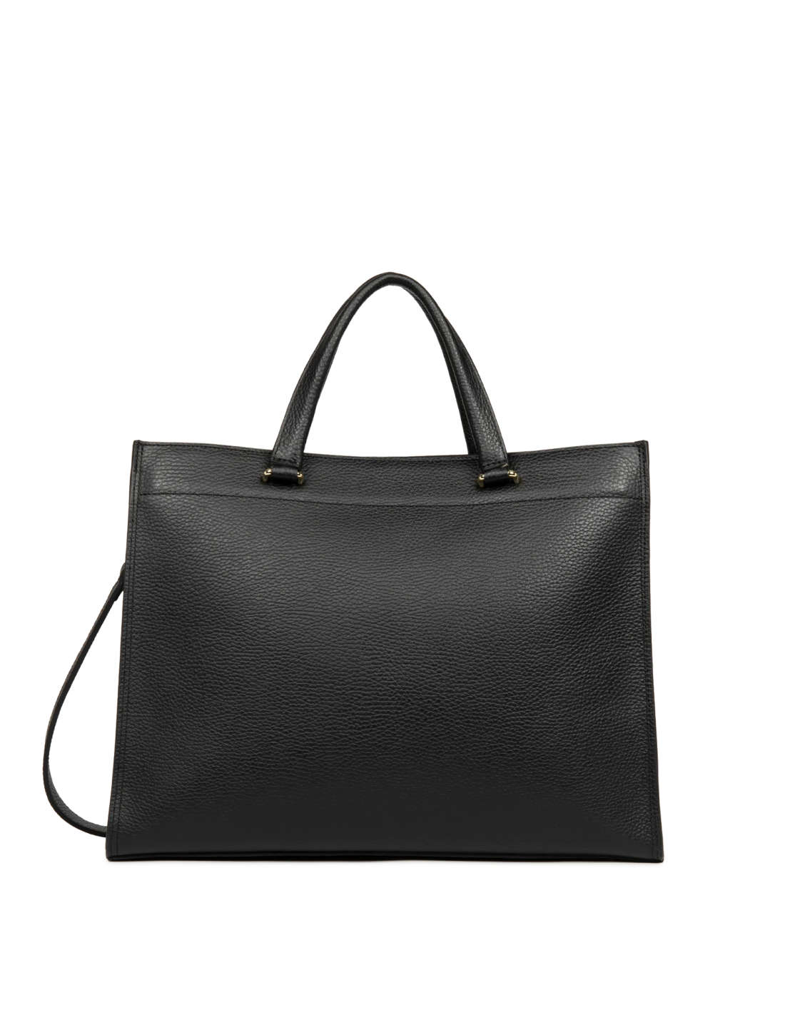 Collezione estivo, Borsa a spalla donna Lancaster Paris, pelle martellata nero, doppi manici, tracolla, chiusura con zip centrale, doppia tasca interna e tasca con zip, logo stampato frontale