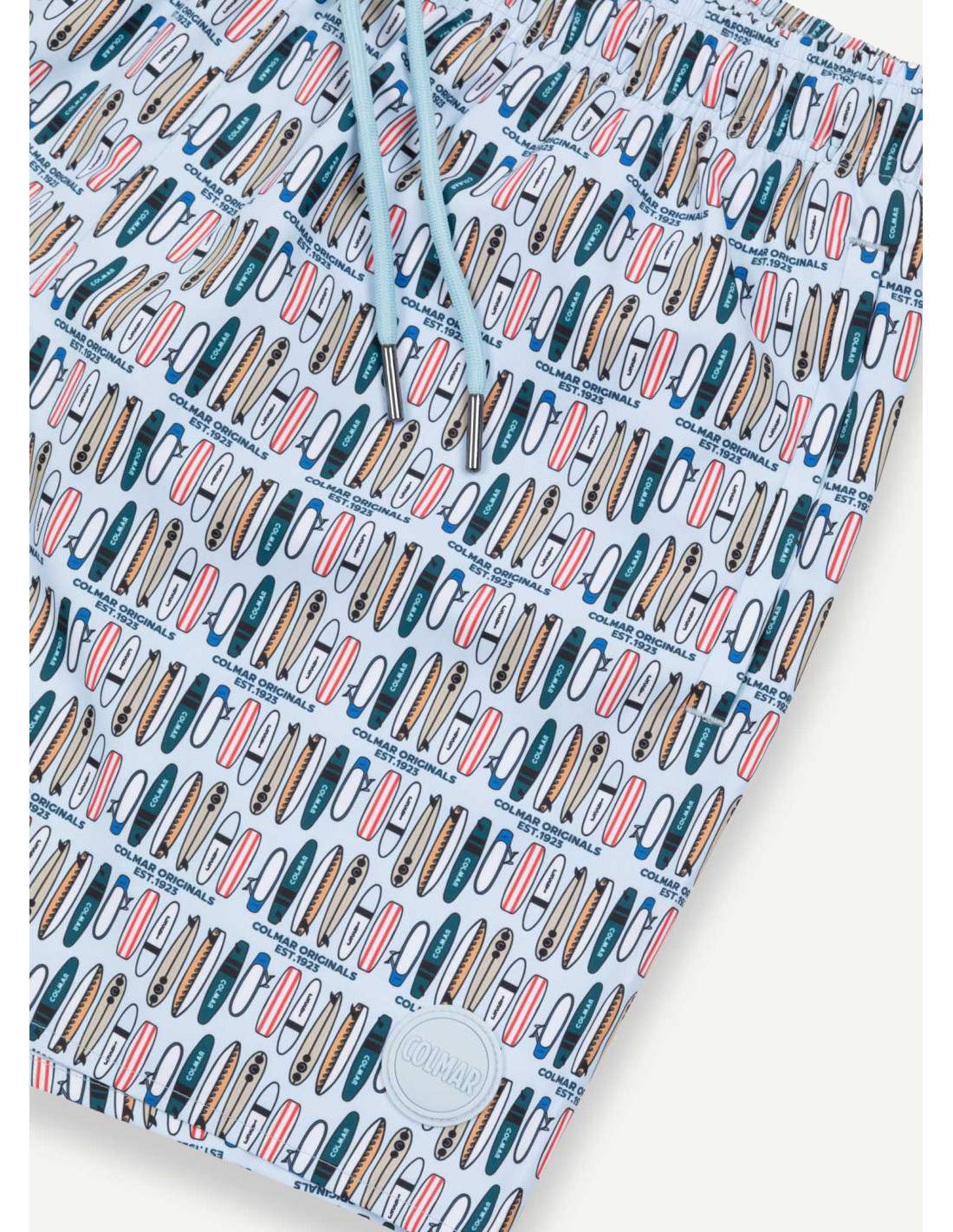 Collezione estiva, Colmar costume mare uomo, nylon asciugatura rapida, stampa fantasia all over, elastico in vita con coulisse, tasche laterali, slip interno in rete, logo applicato