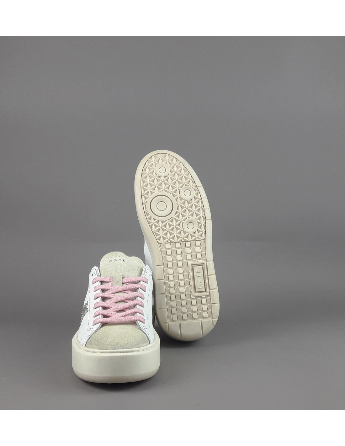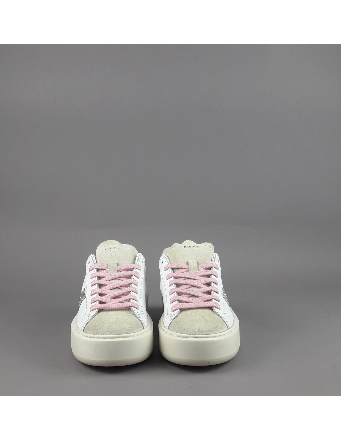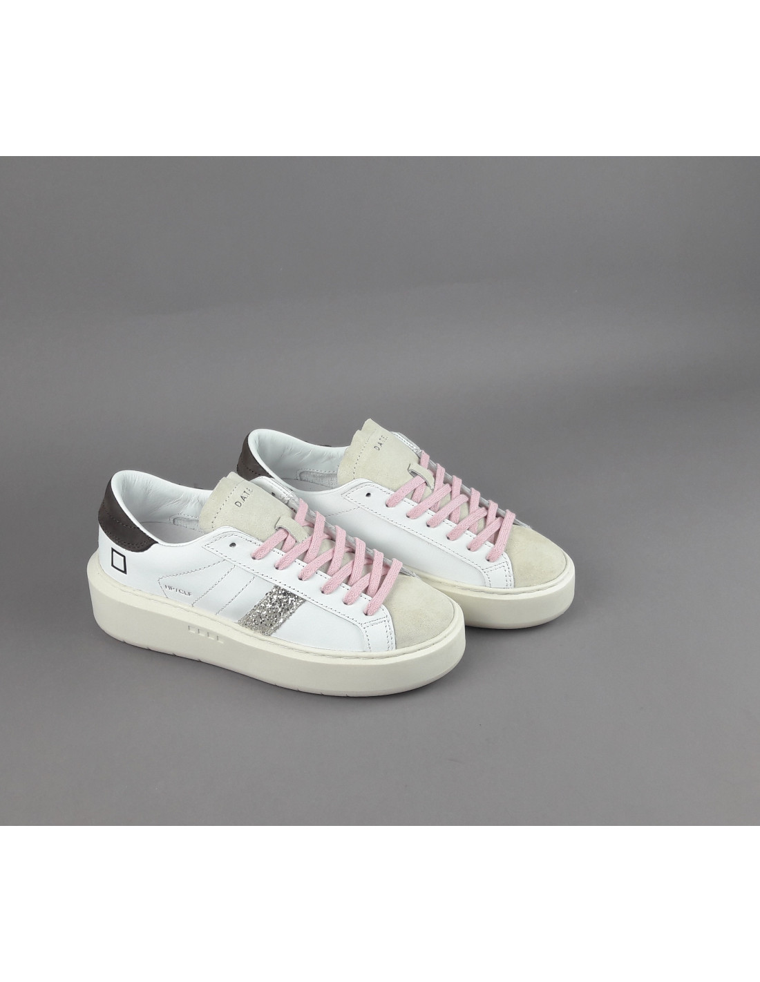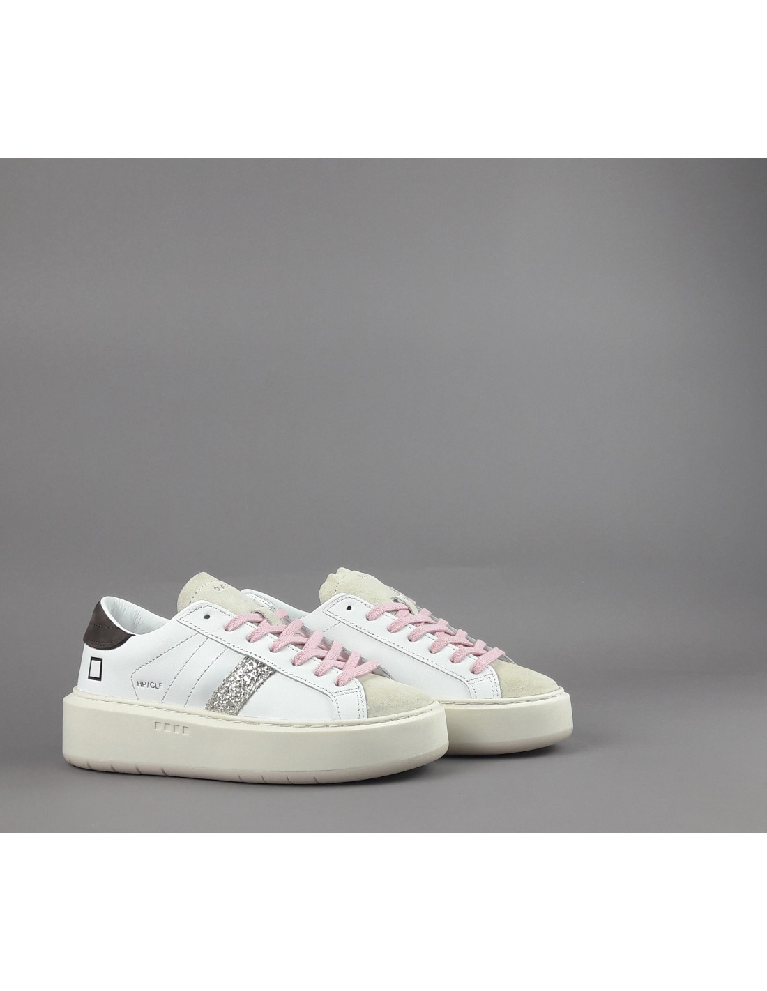 Collezione invernale, Sneakers donna D.A.T.E. HILL PLATFORM in pelle e camoscio, spoiler in camoscio marrone, banda laterale in glitter, linguetta e puntale in camoscio, logo laterale impresso, soletta interna removibile di 2,5 cm, suola in gomma.