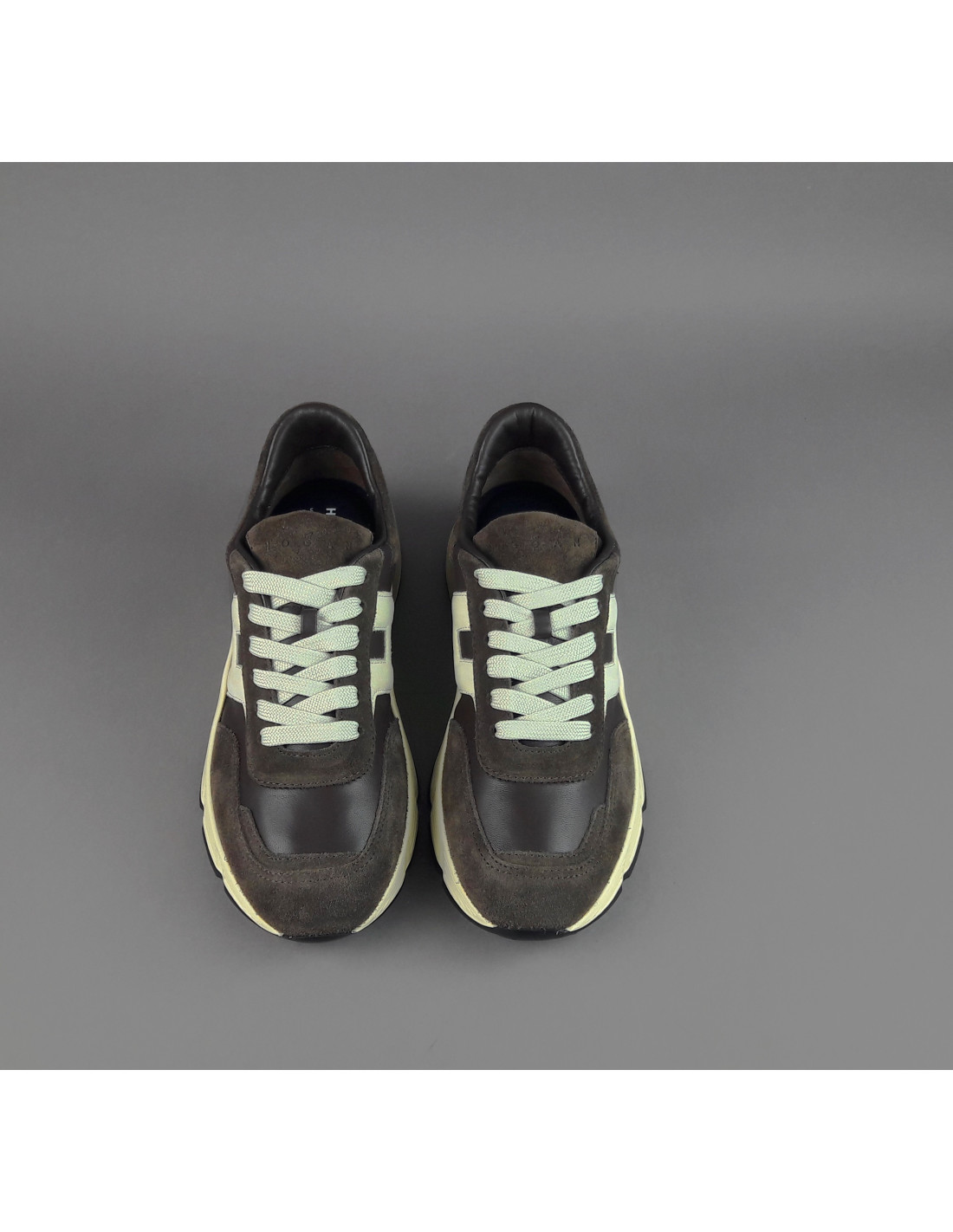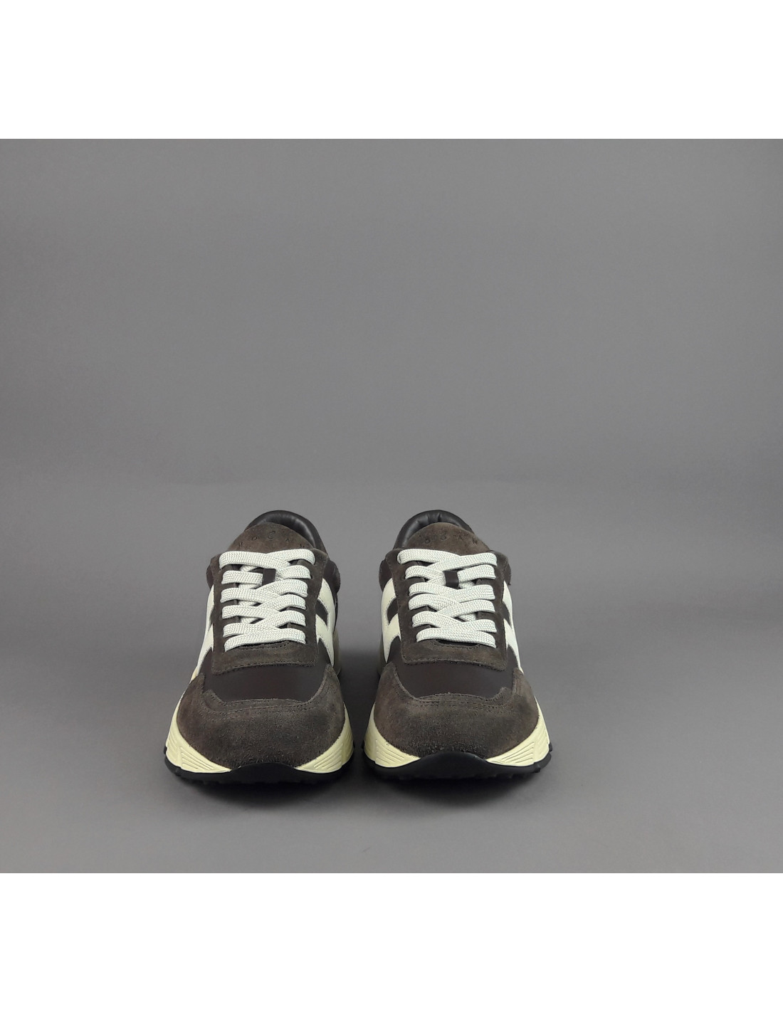 Collezione invernale, sneakers Hogan uomo Hyperlight in camoscio con inserti in pelle, h cucita in pelle bianco, fussbett in memory foam, suola in gomma
