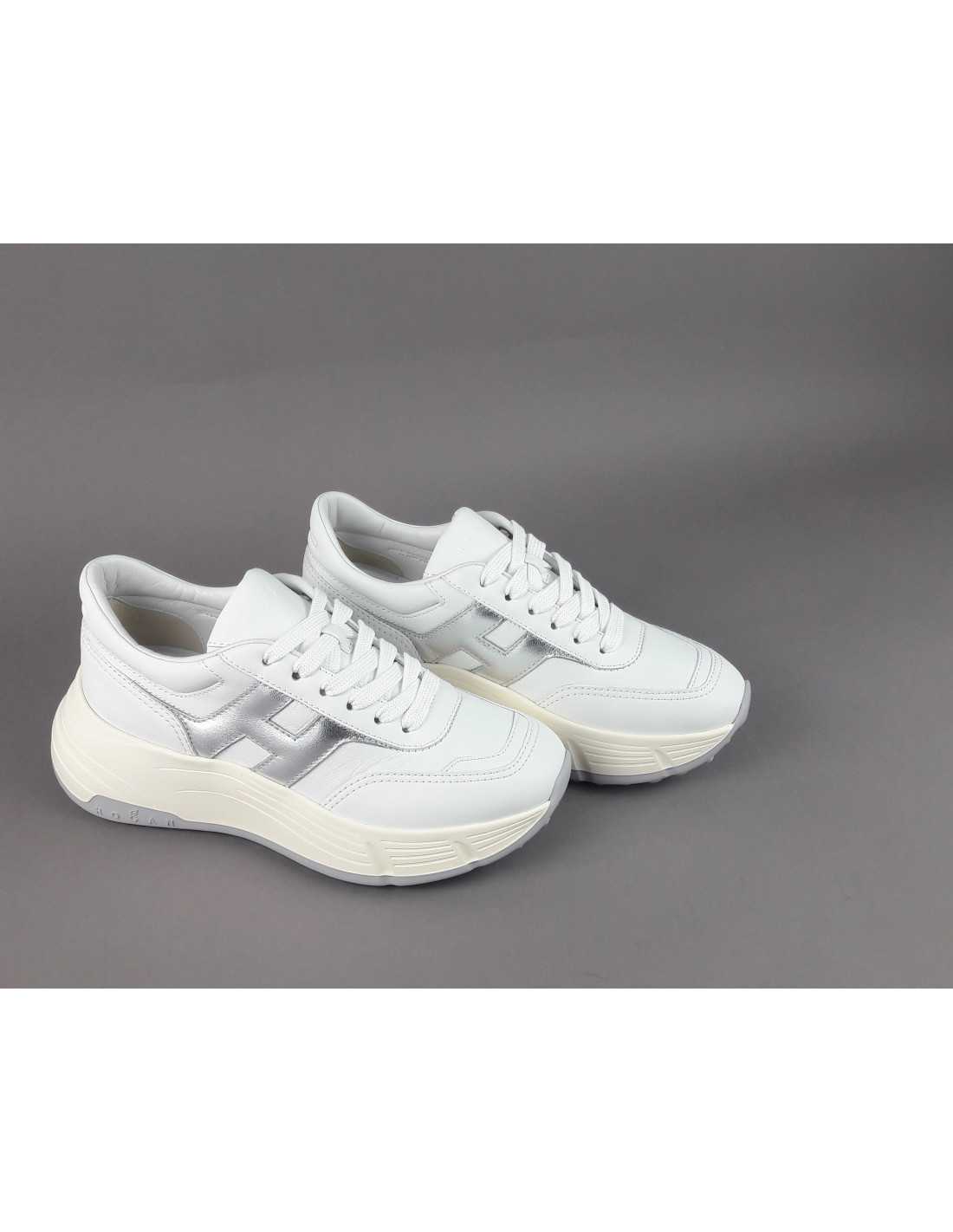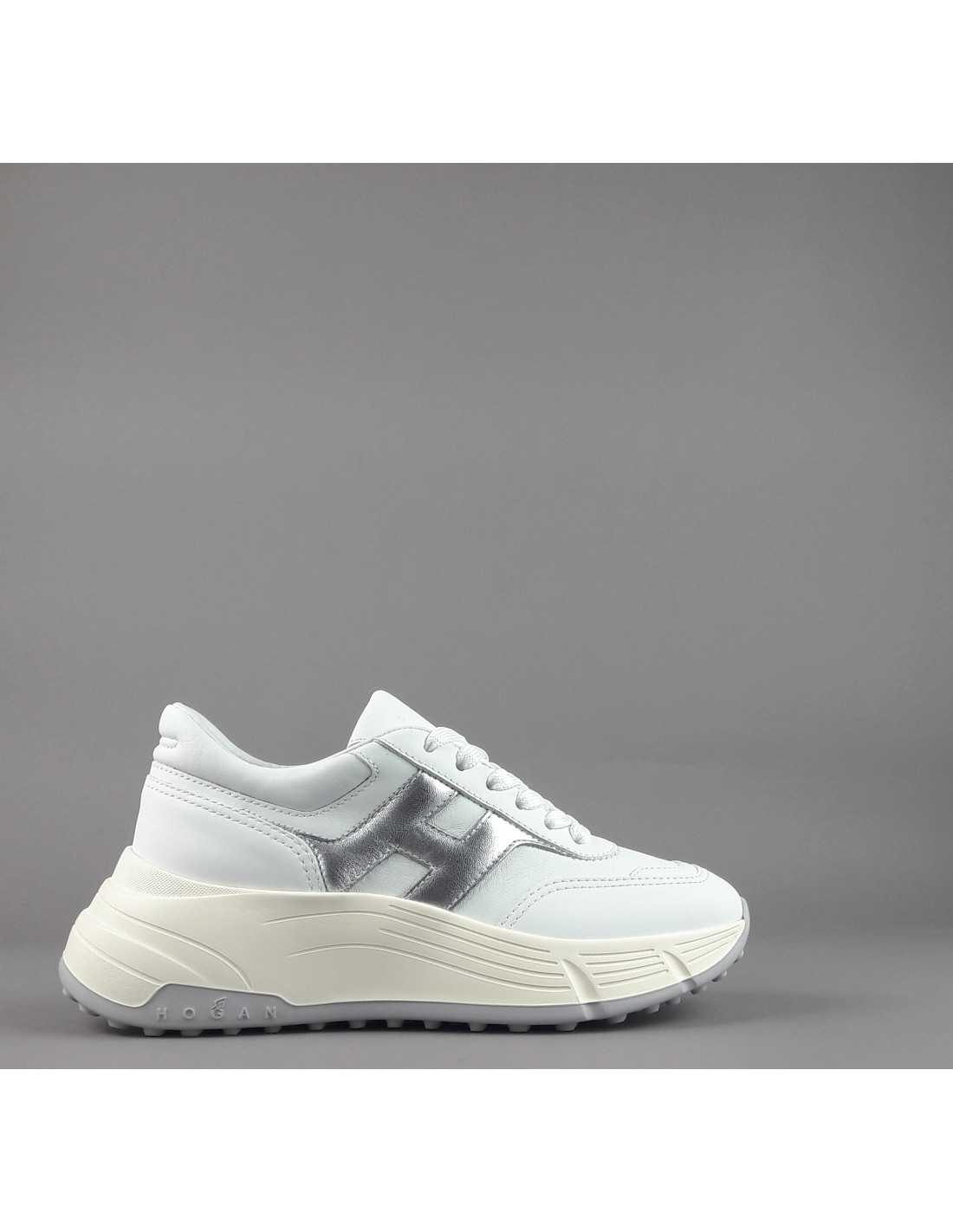 Collezione invernale, Hogan donna H669 in pelle, h laterale imbottita in pelle metal argento, impunture a vista, foussbett estraibile in memory foam, fondo gomma.