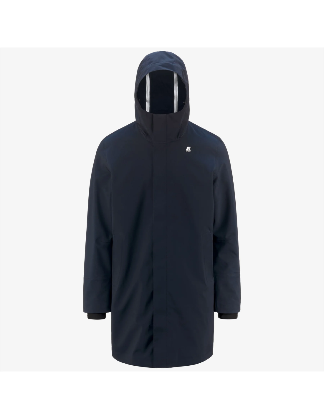Collezione invernale, K-Way giubbino lungo uomo Thomas Bonded, nylon stretch, chiusura con zip, tasche con zip, cappuccio fisso regolabile, fit slim, logo silicone.