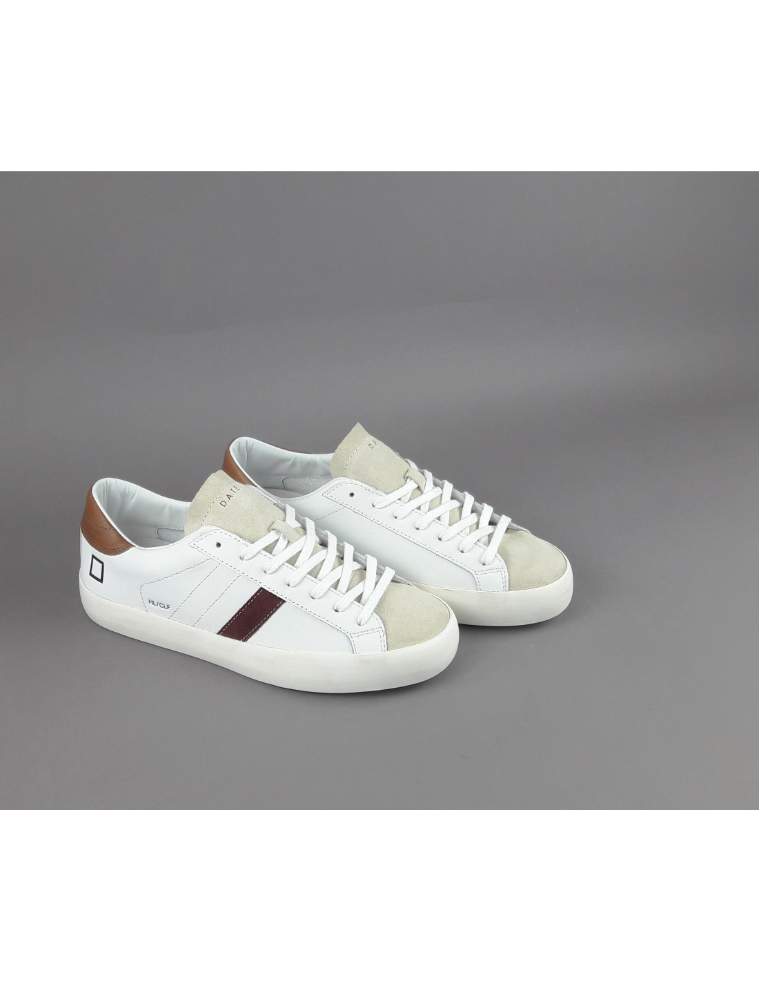Collezione invernale, Sneakers uomo D.A.T.E. HILL LOW in pelle e camoscio, spoiler in pelle cuoio, linguetta e puntale in camoscio beige, logo laterale impresso, soletta interna removibile di 2,5 cm, suola in gomma.