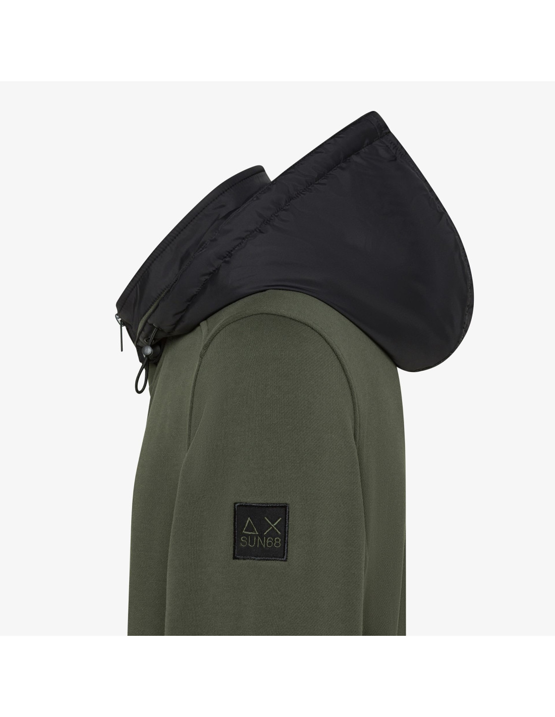 Collezione invernale, Felpa giacca Sun 68 uomo, in misto cotone, manica lunga, cerniera frontale gommata, cappuccio in nylon removibile, patch sun 68 ricamato sulla manica, tasche frontali, vestibilità regular
