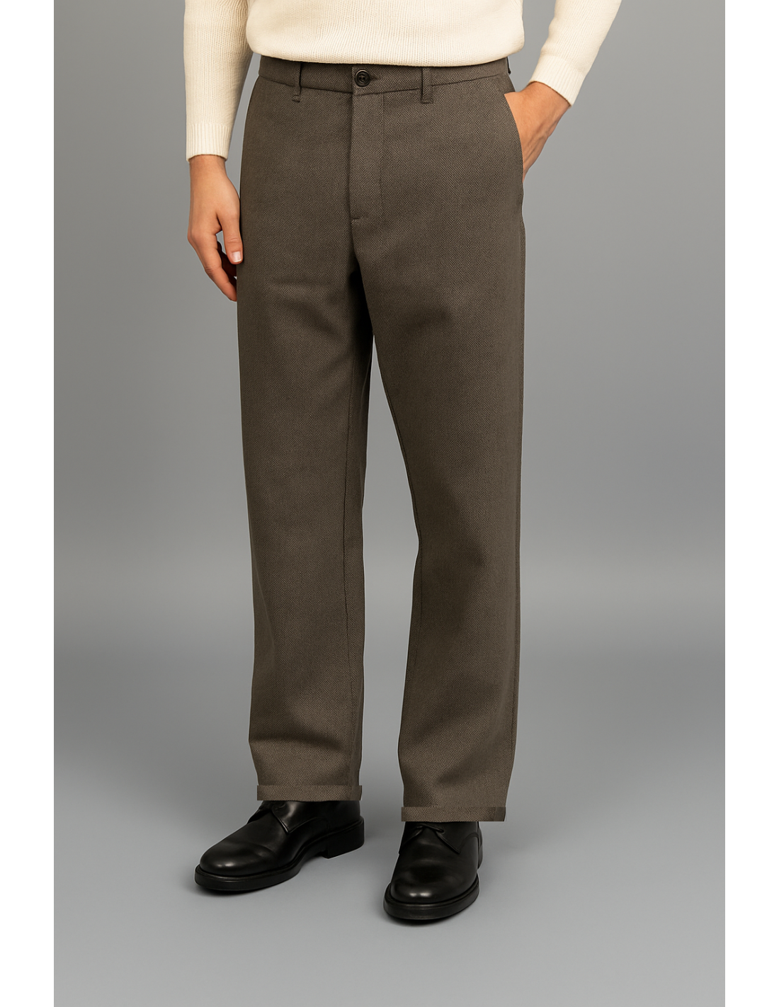 Collezione invernale, Clark pantalone uomo ANCON, in tessuto a spina di pesce stretch, tasche laterali a filo, tashe posteriori con toppe, fondo con risvolto, fit regolare.