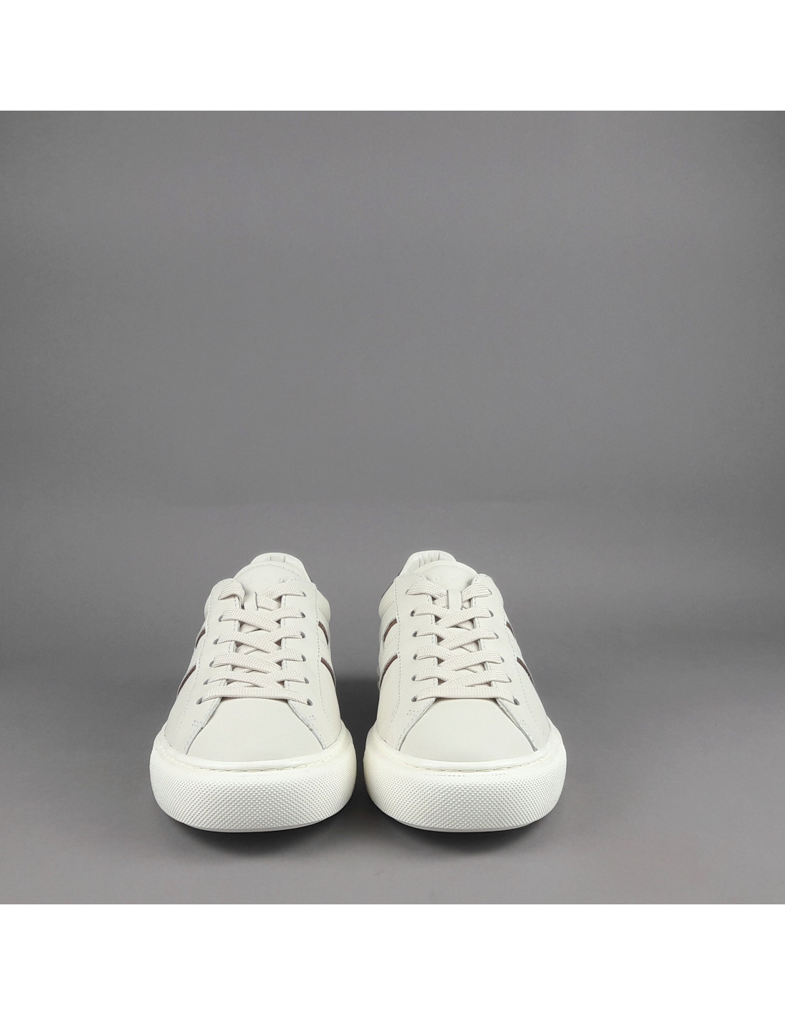 Collezione estiva, sneakers hogan uomo h691, in pelle, h cucita in pelle bianco con profilo cuoio, spoiler tallone in pelle cuoio, fussbett in memory foam, fondo gomma.