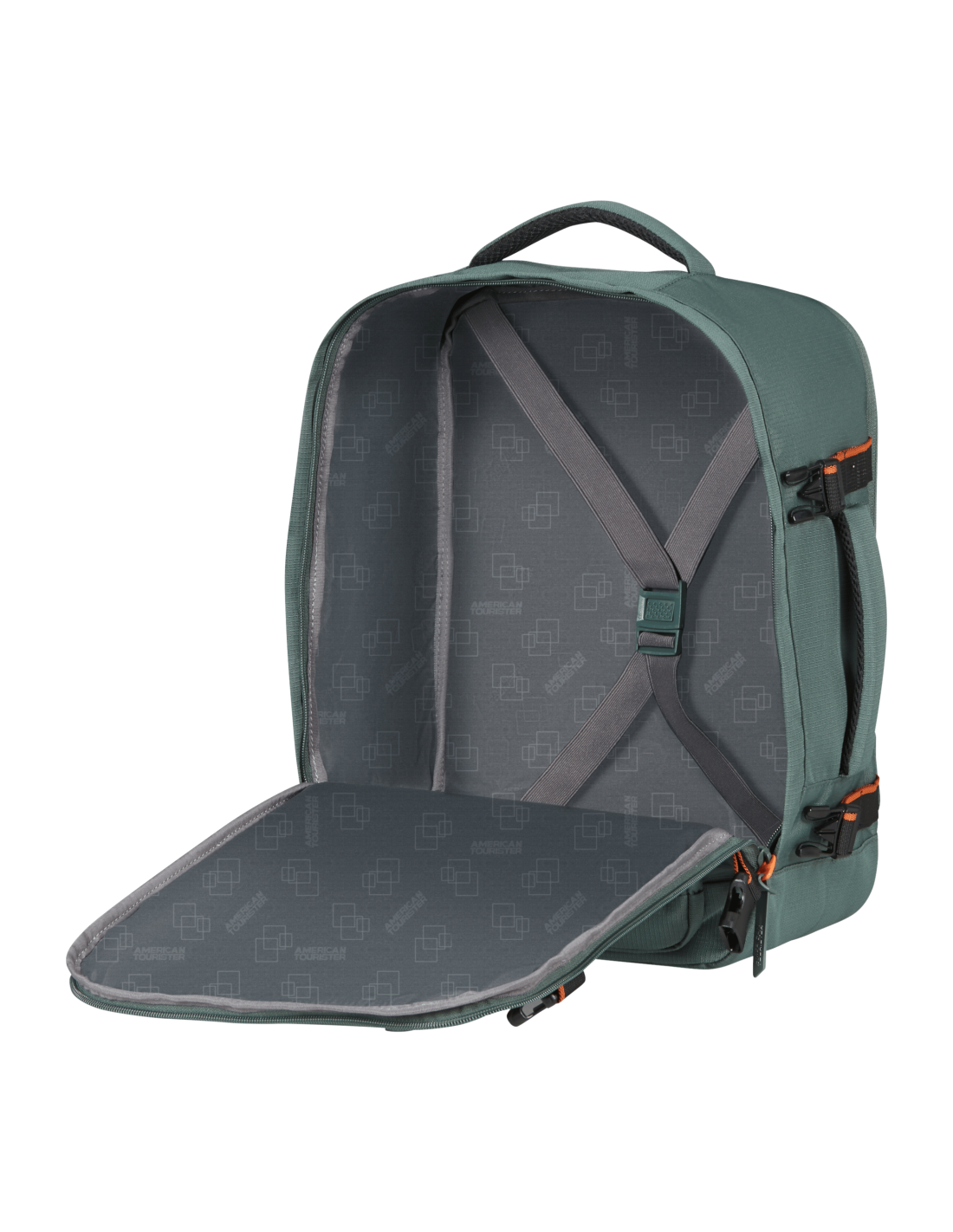 American Tourister BY Samsonite Zaino borsa Take 2 Cabin S/M in tessuto nylon riciclato, chiusure con zip, spallacci ergonomici imbottiti, manico centrale, cinghie di compressione interne.