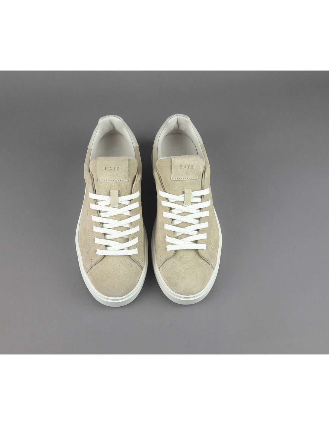 D.A.T.E. Collezione estiva, Sneakers uomo LEVANTE in camoscio, spoiler in pelle avorio, logo laterale impresso, fondo cucito, soletta interna removibile di 2,5 cm, suola in gomma.