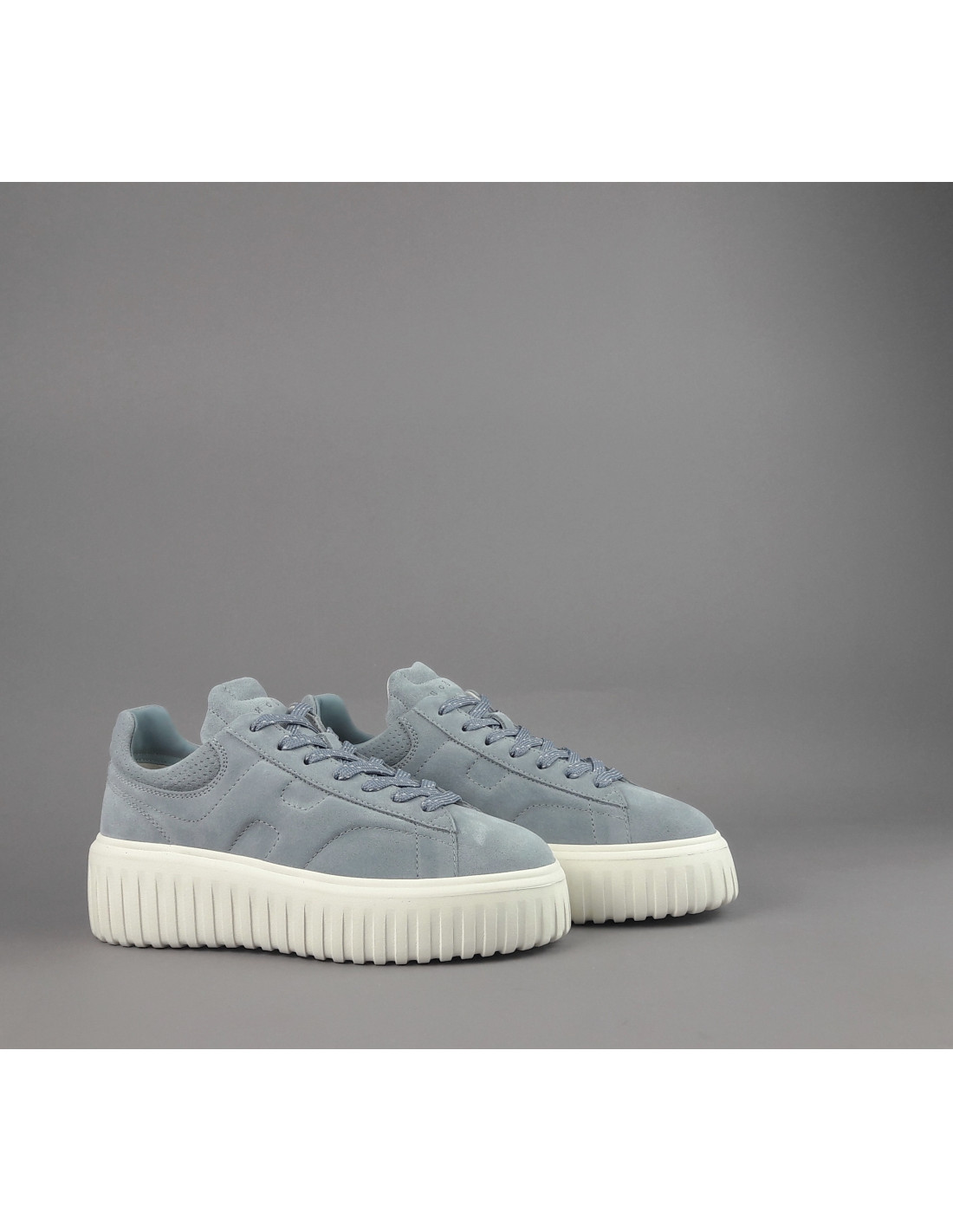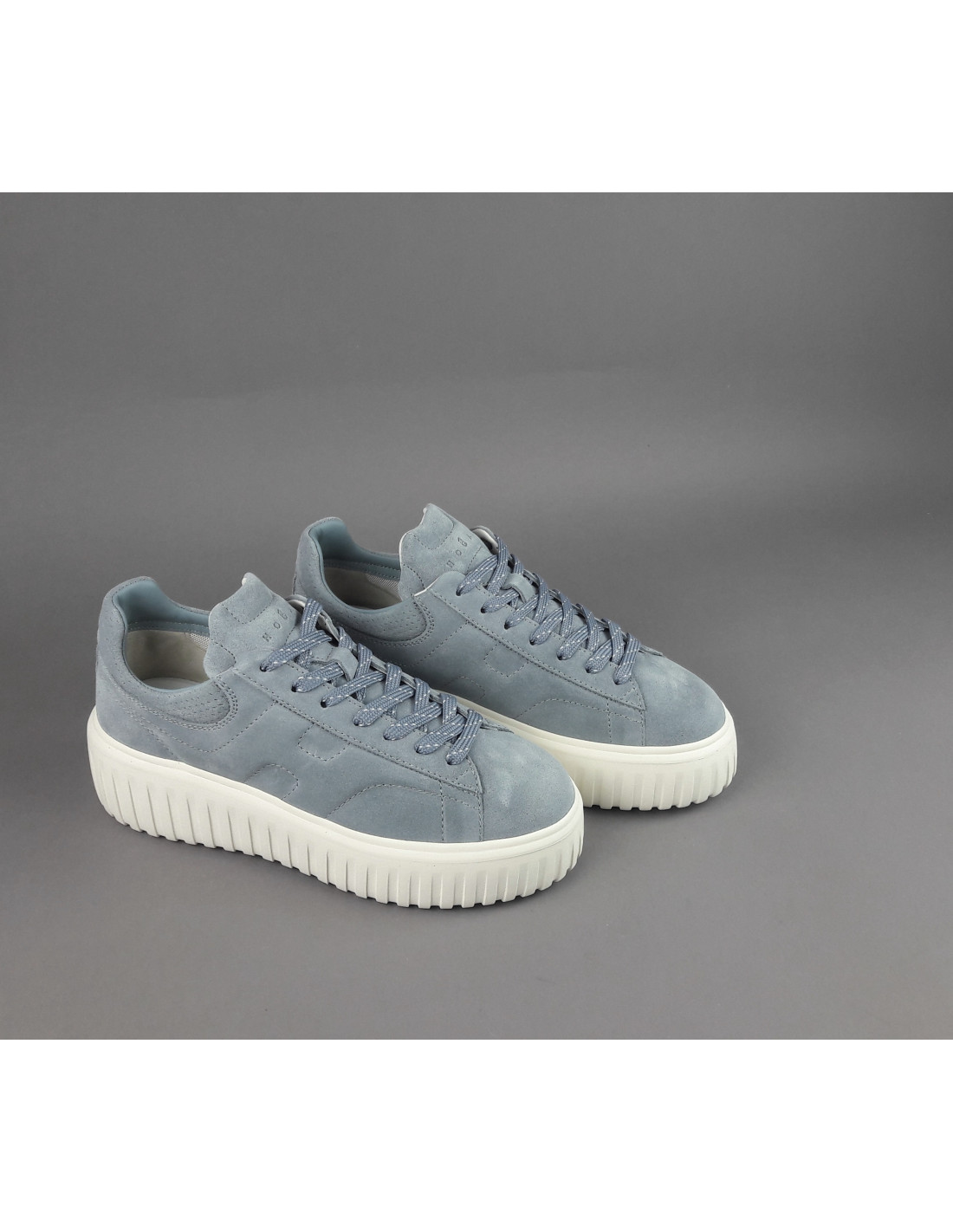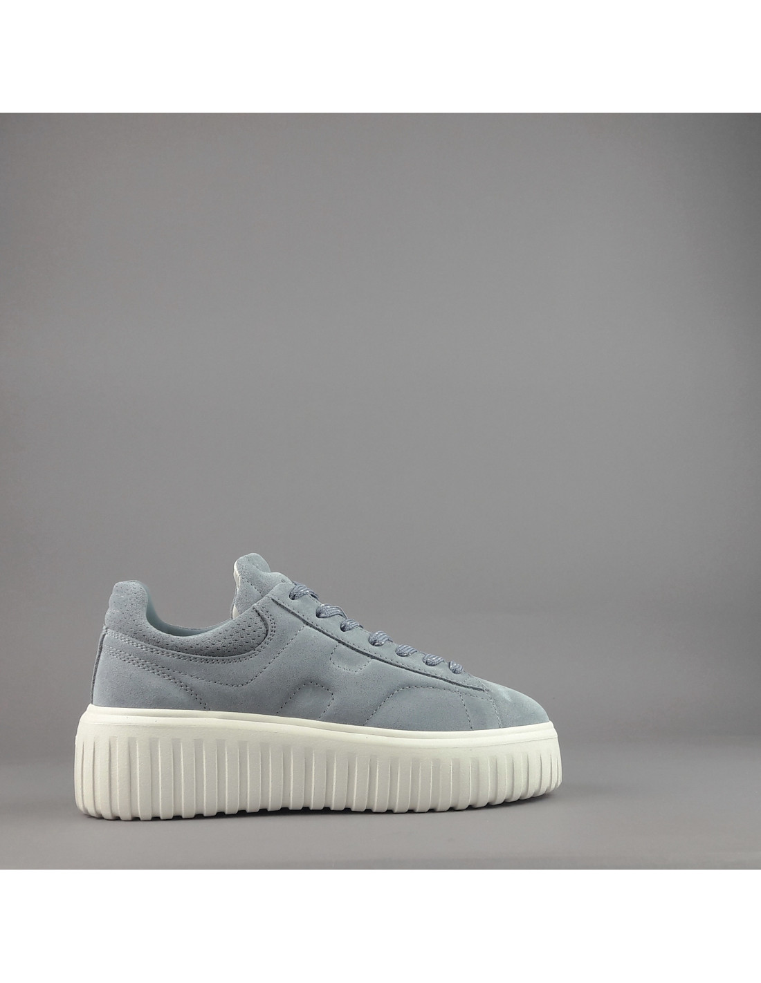 Hogan collezione estiva, sneakers donna H-STRIPES H651, in camoscio, h imbottita, spoiler in tinta, fussbett in memory foam estraibile, fondo gomma 5,8cm.