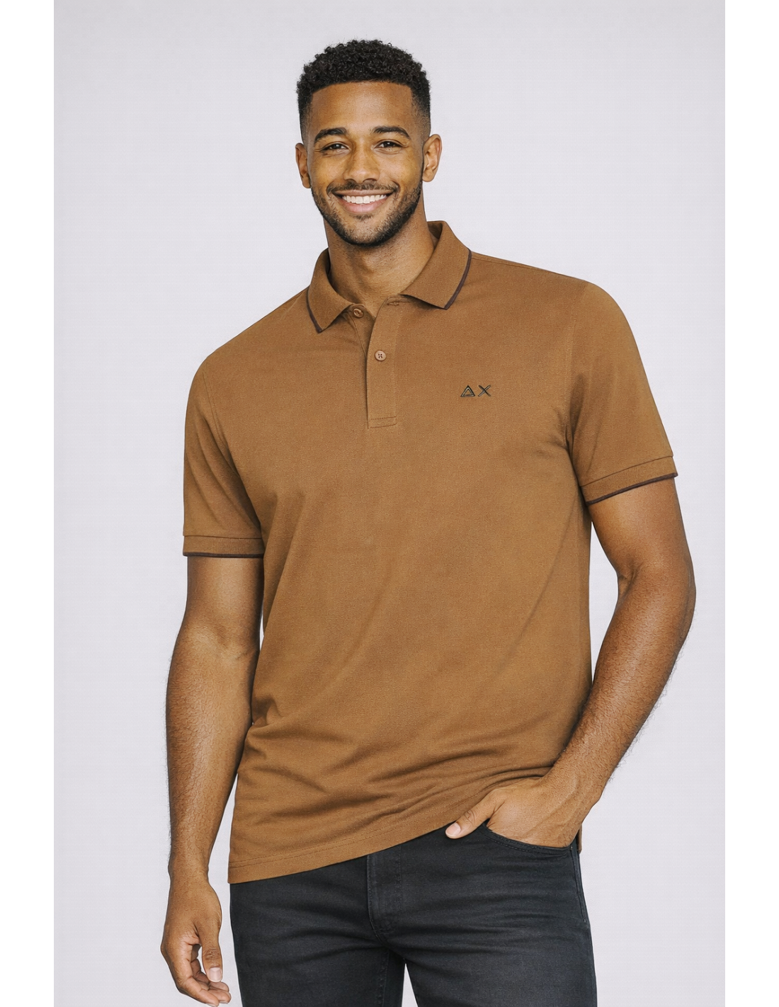 Sun 68 --- Polo Uomo Small Stripes Marrone Chiaro