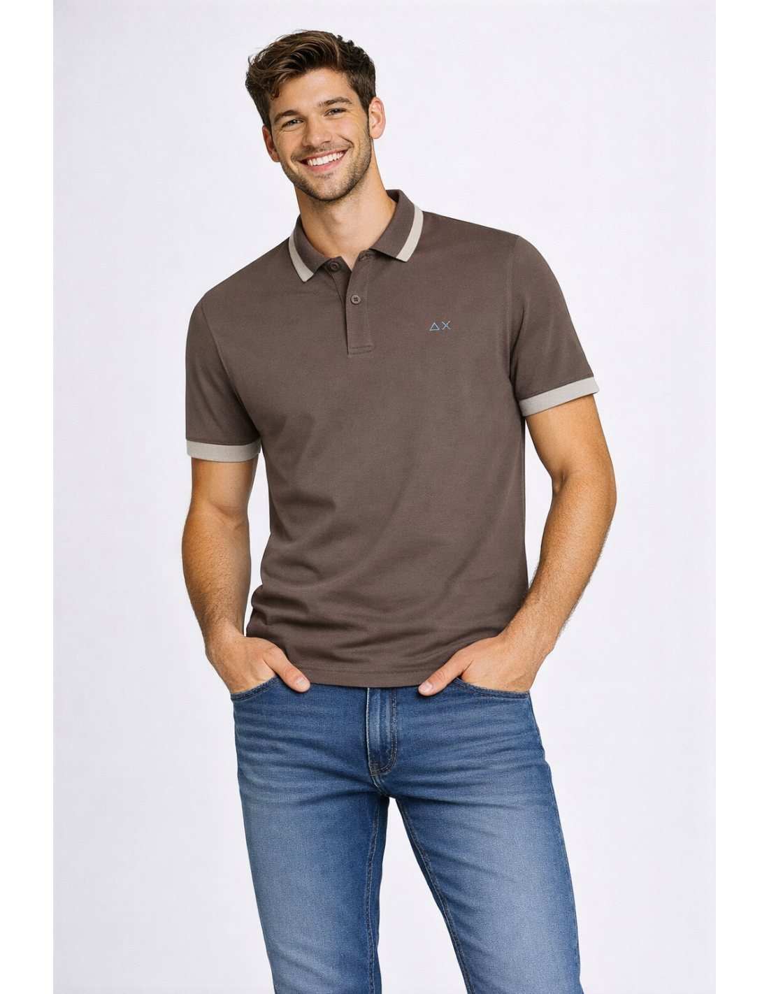 Sun 68 --- Polo Uomo Big Stripes Marrone Scuro
