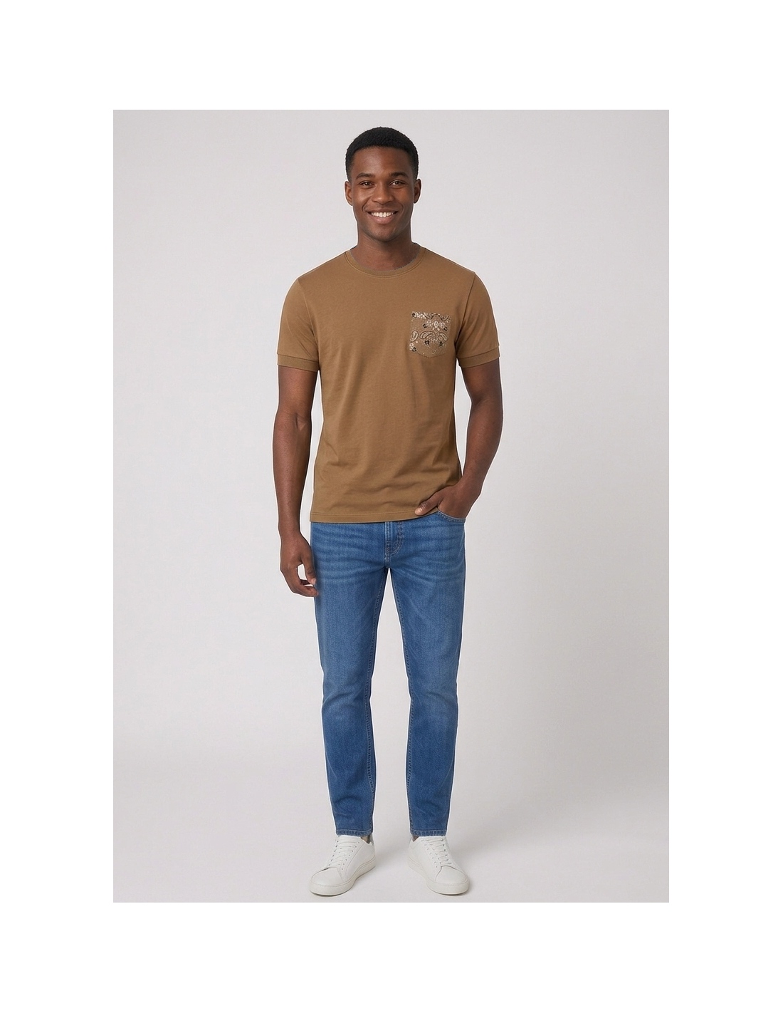 Sun 68 collezione estiva, t-shirt uomo, in jersey di cotone, taschino con stampa paisley, manica corta, girocollo, logo cucito, vestibilità regular.