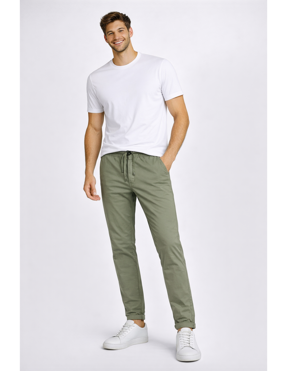 Clark collezione estiva, pantalone pantalaccio uomo Lewis, in tessuto popeline stretch, tasche laterali america, tashe posteriori a filo, elastico e coulusse in vita fondo con risvolto, fit regolare.